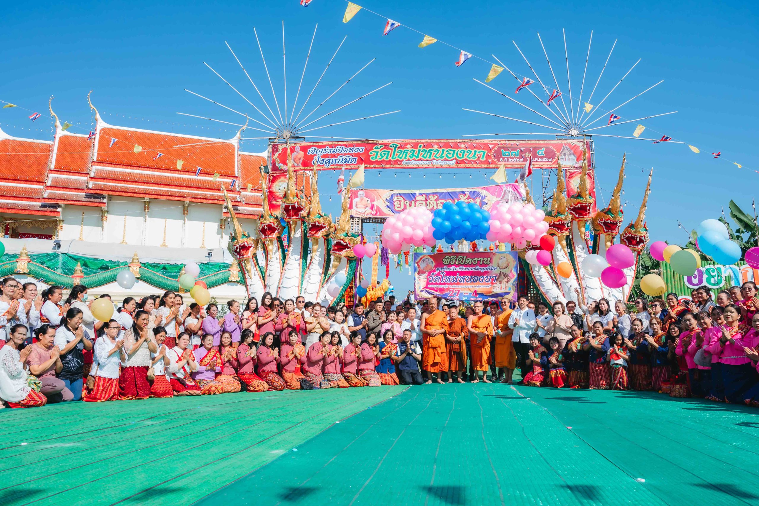 ส่องเลขเด็ดขันน้ำมนต์ หลวงปู่สมบุญ อายุ 104 ปี งานปิดทองฝังลูกนิมิต วัดใหม่หนองนา ชาวบ้านแต่งชุดไทยพื้นถิ่น ลาวครั่ง สวยงามร่วมงาน โดยทางวัดเน้นการทำบุญ งดมหรสพ ส่วนนักแสวงโชค ไม่พลาดส่องเลขเด็ด ขันน้ำมนต์ “หลวงปู่สมบุญ” อายุ 104 ปี พระเกจิดังเมืองสุพรรณบุรี นำไปเสี่ยงโชคต้อนรับปีใหม่