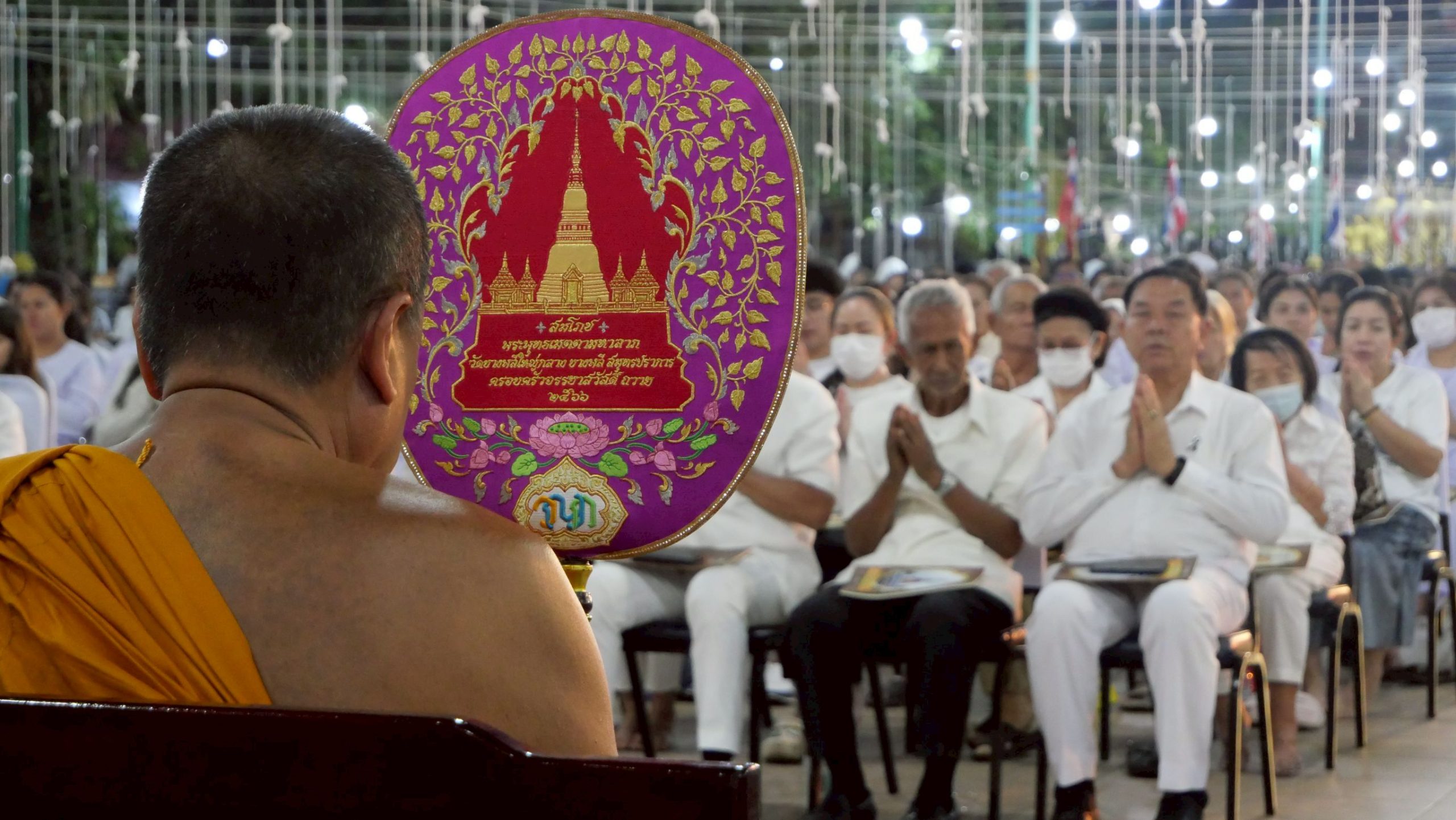 สมุทรปราการ ชาวบางพลีนับพันคนร่วมสวดมนต์ข้ามปีและร้องเพลงชาติไทยดังกึกก้องวัดบางพลีใหญ่กลาง