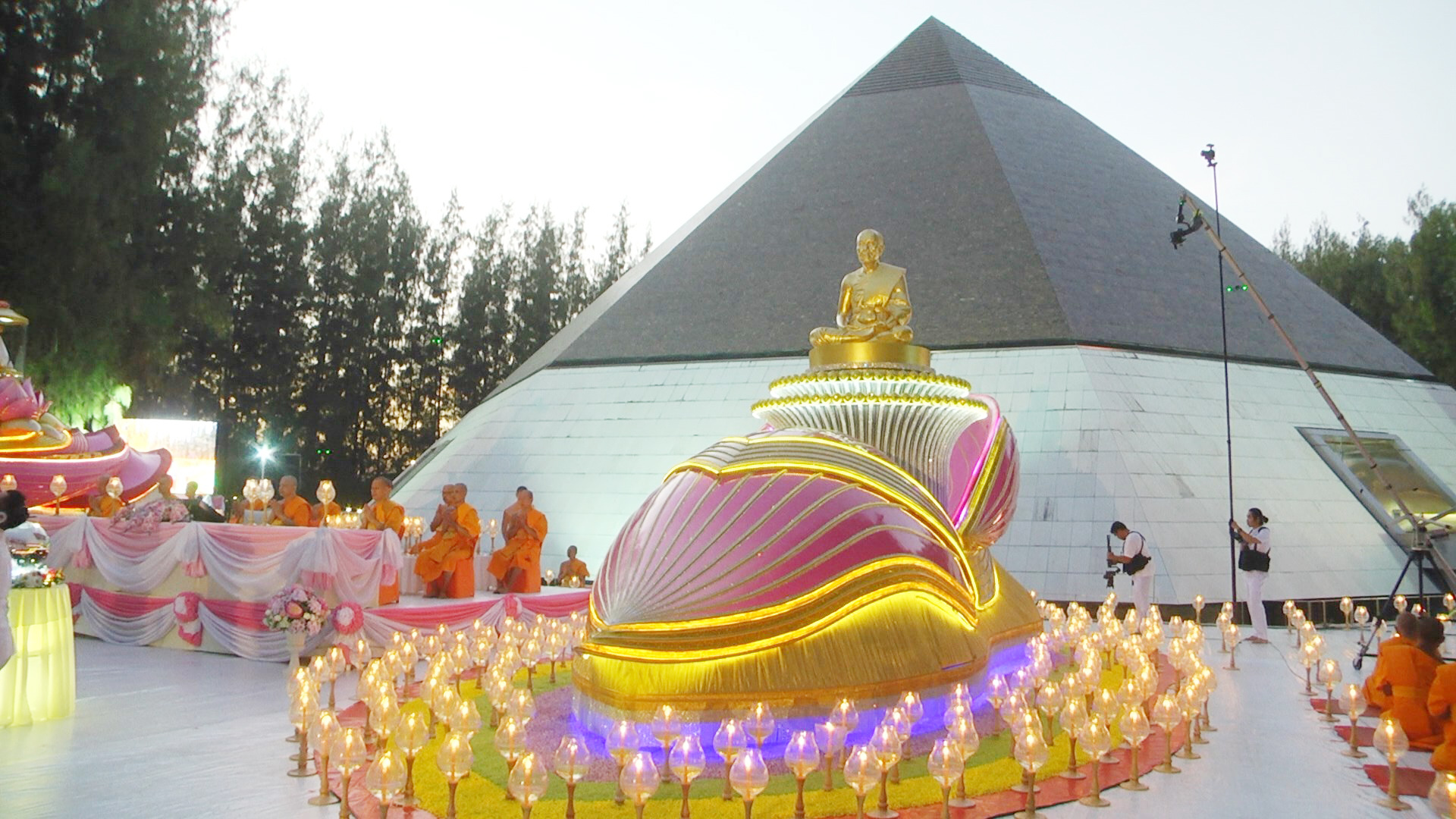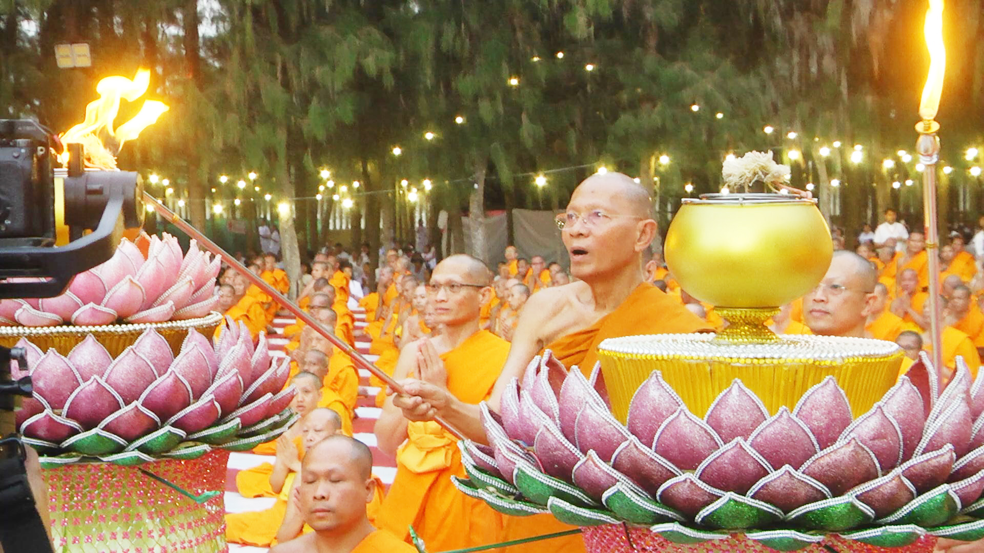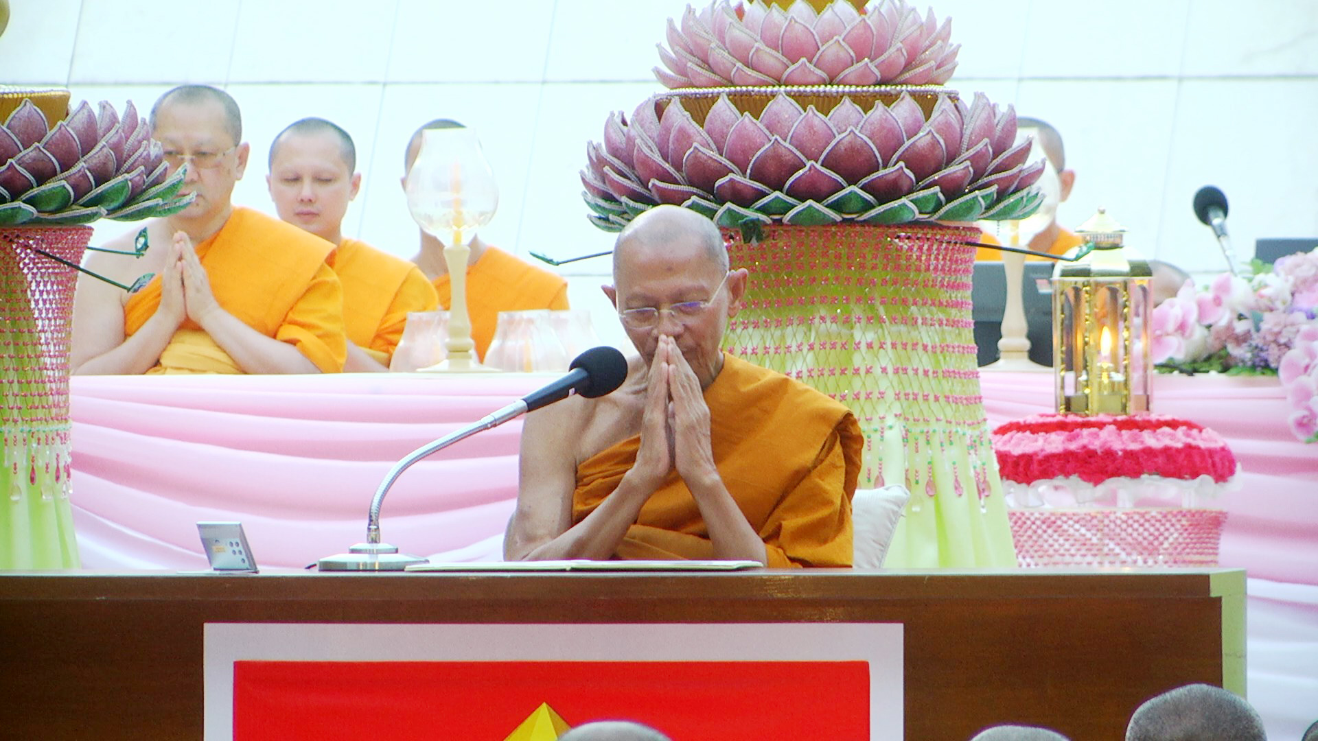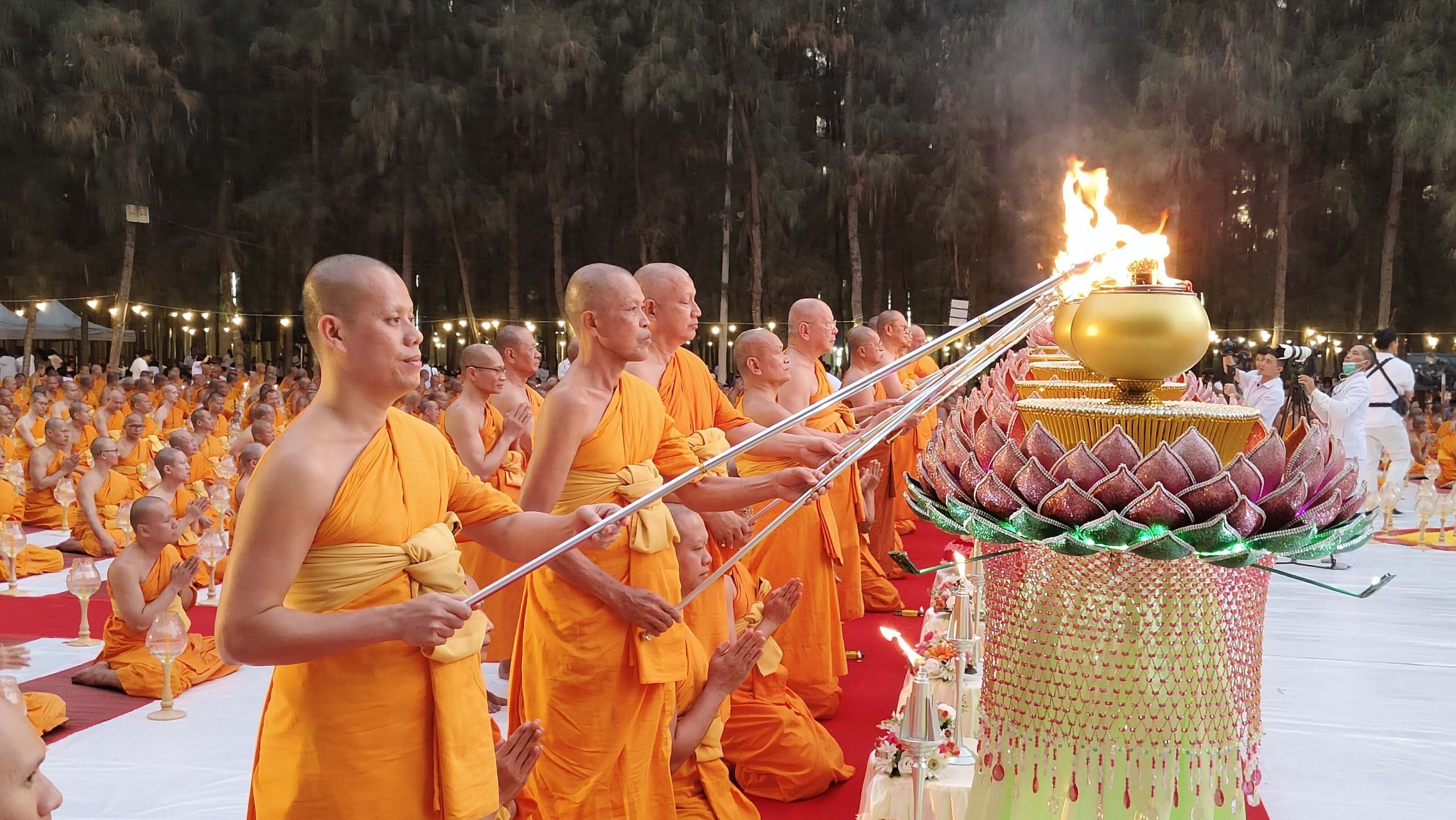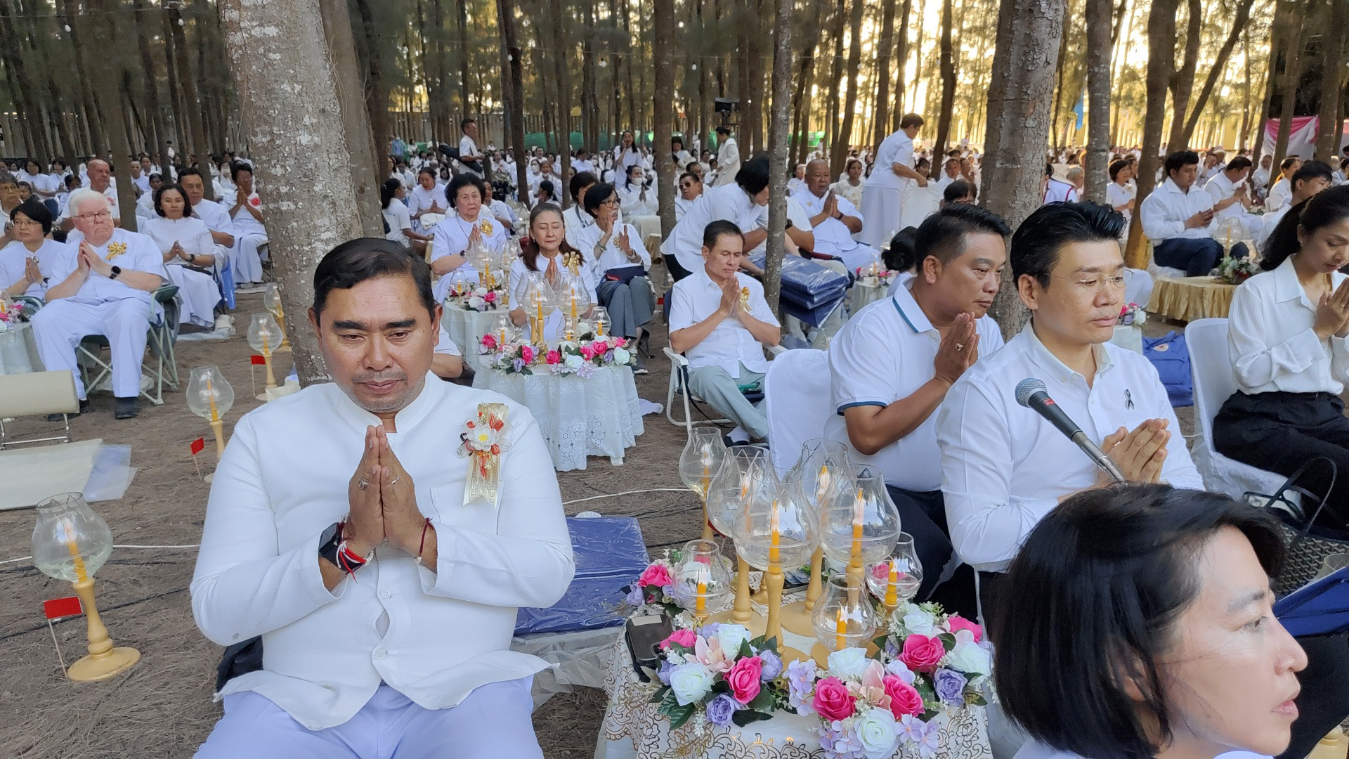 จากนั้น พระพรหมดิลก เจ้าอาวาสวัดสามพระยาวรวิหาร น้อมนำพวงมาลัยถวายบูชาพระบรมสารีริกธาตุ และรูปหล่อพระมงคลเทพมุนี (สด จนฺทสโร) พร้อมด้วย พระปริยัติวรคุณ เจ้าคณะอำเภอสองพี่น้อง เจ้าอาวาสวัดสองพี่น้อง พระอารามหลวง นำคณะสงฆ์ธรรมยาตรา 1,142 รูป และพุทธศาสนิกชนจุดประทีปถวายเป็นพุทธบูชา และบูชาธรรมพระมงคลเทพมุนี (สด จนฺทสโร) โดยพระภาวนาธรรมวิเทศ แสดงพระธรรมเทศนาเรื่อง ความสำคัญของสถานที่เกิดด้วยรูปกายเนื้อ พระมงคลเทพมุนี (สด จนฺทสโร) ความตอนหนึ่งว่า “อนุสรณ์สถานบ้านเกิดพระมงคลเทพมุนี (สด จนฺทสโร) สถานที่เกิดรูปกายเนื้อของพระมงคลเทพมุนี ตั้งอยู่บนแผ่นดินรูปดอกบัว มีน้ำล้อมรอบ ตรงข้ามวัดสองพี่น้อง มีพื้นที่ประมาณ 20 ไร่ คณะศิษยานุศิษย์ได้ร่วมกันจัดสร้างมหาวิหารพระมงคลเทพมุนี (สด จนฺทสโร) เป็นรูปทรงภูเขาทอง 8 เหลี่ยม ภายในบันทึกประวัติการสร้างบารมีของท่านตั้งแต่ปฐมวัย มัชฌิมวัย และปัจฉิมวัย บริเวณกลางมหาวิหารฯ ประดิษฐานรูปหล่อทองคำของพระเดชพระคุณพระมงคลเทพมุนี เพื่อให้สาธุชนได้กราบไหว้”
