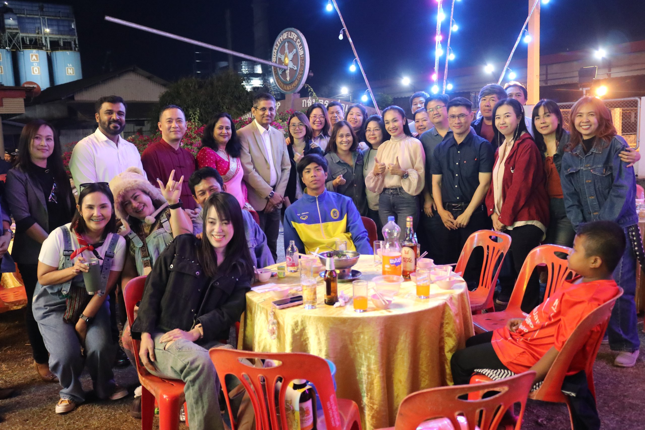 ช่วงค่ำในวันเดียวกันภายในงานได้มีการจัดเลี้ยงอาหาร (โต๊ะจีน) เพื่อเป็นการเฉลิมฉลองเลี้ยงต้องรับปีใหม่ 2569 และมีการมอบรางวัลให้แก่ผู้ร่วมงาน (พนักงาน) โดยมีนายไพบูลย์ ศุภบุญ รองผวจ.อ่างทองประธานในพิธีเป็นผู้จับรางวัล และมีผู้บริหารของในเครือบริษัทฯ มิสเตอร์ อมิต กุมาร ประธานการผลิตประจำภูมิภาคเอเชีย ยูเบลา เชา ประธานบริษัท เบอร์ล่า คาร์บอน (ไทยแลนด์ ) จำกัด (มหาชน) นางสาวอติกานต์ ปิ่นสุข ผู้จัดการทั่วไปฝ่ายทรัพยากรมนุษย์ นางสาวฐิติพร สมบัติศิระสกุล ผู้จัดการอาวุโสฝ่ายทรัพยากรมนุษย์ และนายอภิชาต ปัทมโรจน์ ผู้จัดการอาวุโสฝ่ายคลังสินค้าร่วมเป็นผู้จับและมอบรางวัลให้แก่พนักงานผู้โชคดีที่อยู่ภายในงานดังกล่าว โดยรางวัลใหญ่เป็นทองคำรูปพรรณ และรางวังอื่นๆ เป็นเงินสดนับหมื่นบาทจำนวน 5 รางวัลด้วยกัน