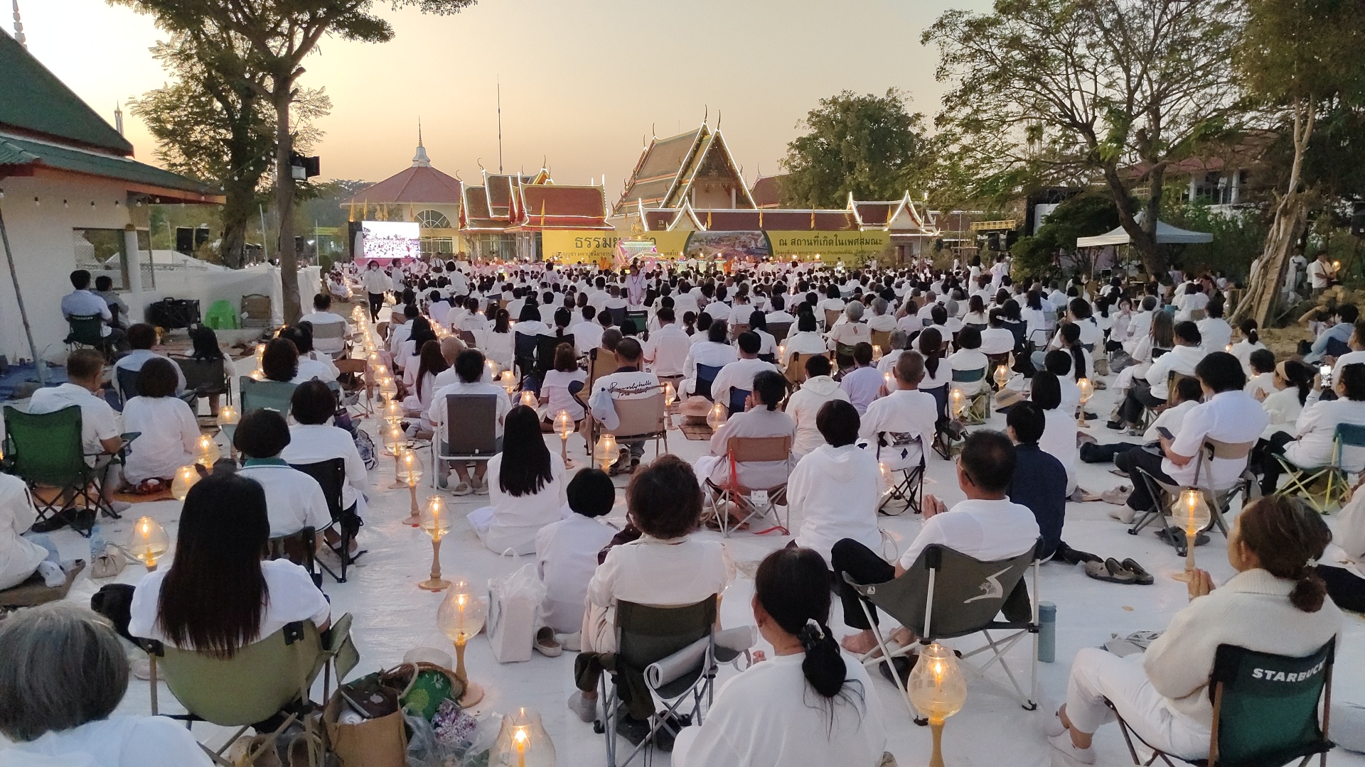 ธรรมยาตรา 1,142 รูป เจริญภาวนา อุทิศถวายเป็นพระราชกุศลแด่สมเด็จพระบรมราชชนนีพันปีหลวง จุดประทีปถวายเป็นพุทธบูชา และบูชาธรรมพระมงคลเทพมุนี (สด จนฺทสโร)