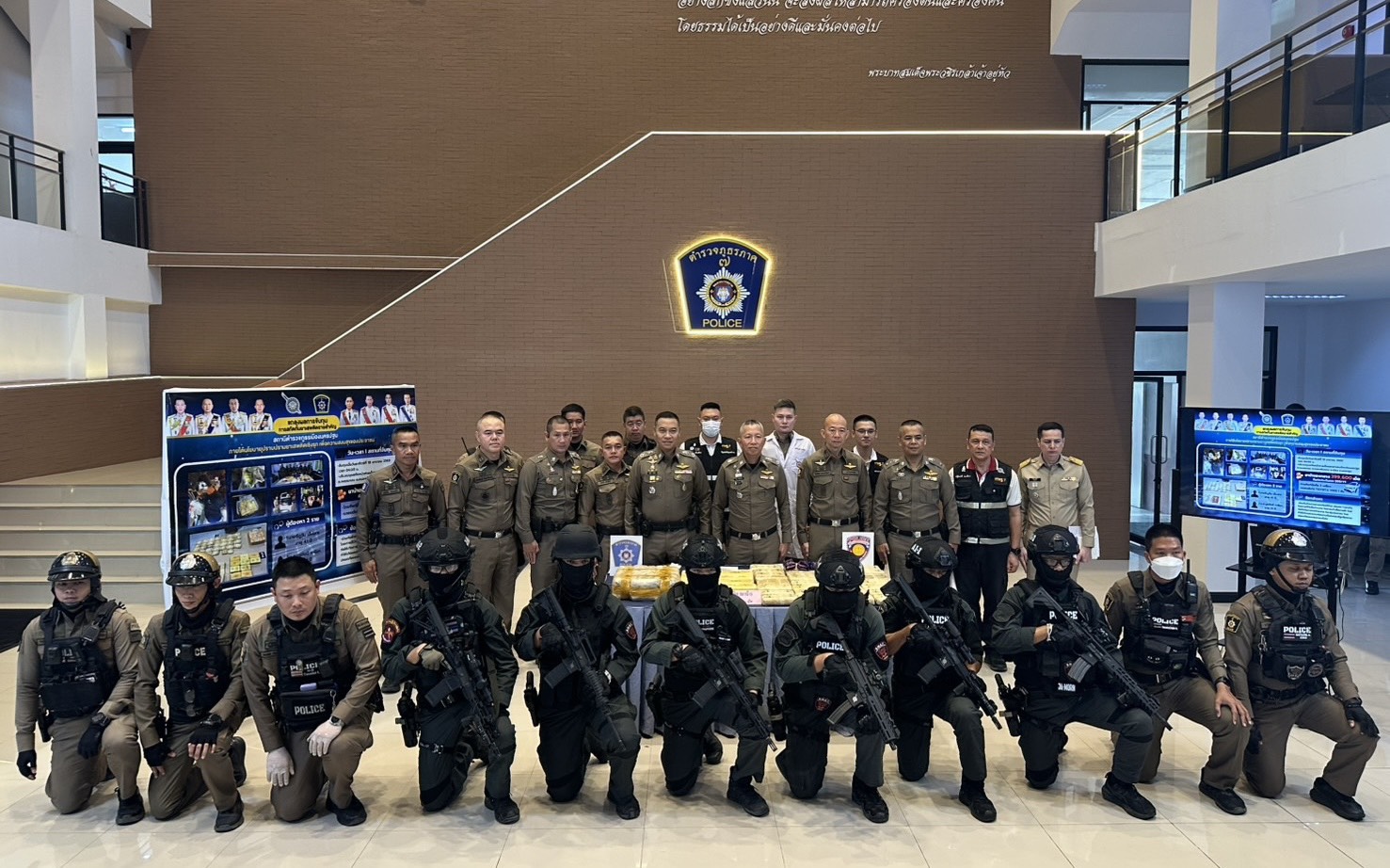 พล.ต.ท.พิสิฐ ตันประเสริฐ ผบช.ภ.7,พร้อมด้วย พล.ต.ต.พิทักษ์ อุปหงษ์ ผบก.ก.จ.นครปฐม พ.ต.อ.เทิดเกียรติ รักพานิชมณี รอง ผบก.ภ.จว.นครปฐม,พ.ต.อ.อิทธิพล พรเทวบัญชา รอง ผบก.ก.จว.นครปฐม ,และ พ.ต.อ.อชิรวัตติ์ ถาวรเจริญวัฒน์ ผกก.สภ.เมืองนครปฐม พ.ต.ท.ตะวัน วัฒนรังสรรค์ รอง ผกก.ป.สก.เมืองนครปฐม, พ.ต.ท.ฤทธิชัยปกรณ์ ดำรงค์อิทธิสกุล รอง ผกก.สส.สภ.เมืองนครปฐม ร่วมกันแถลงข่าวการจับกุมสองผัวเมียขับเก๋งขนยาบ้า394,600 เม็ดส่งไปภาคใต้