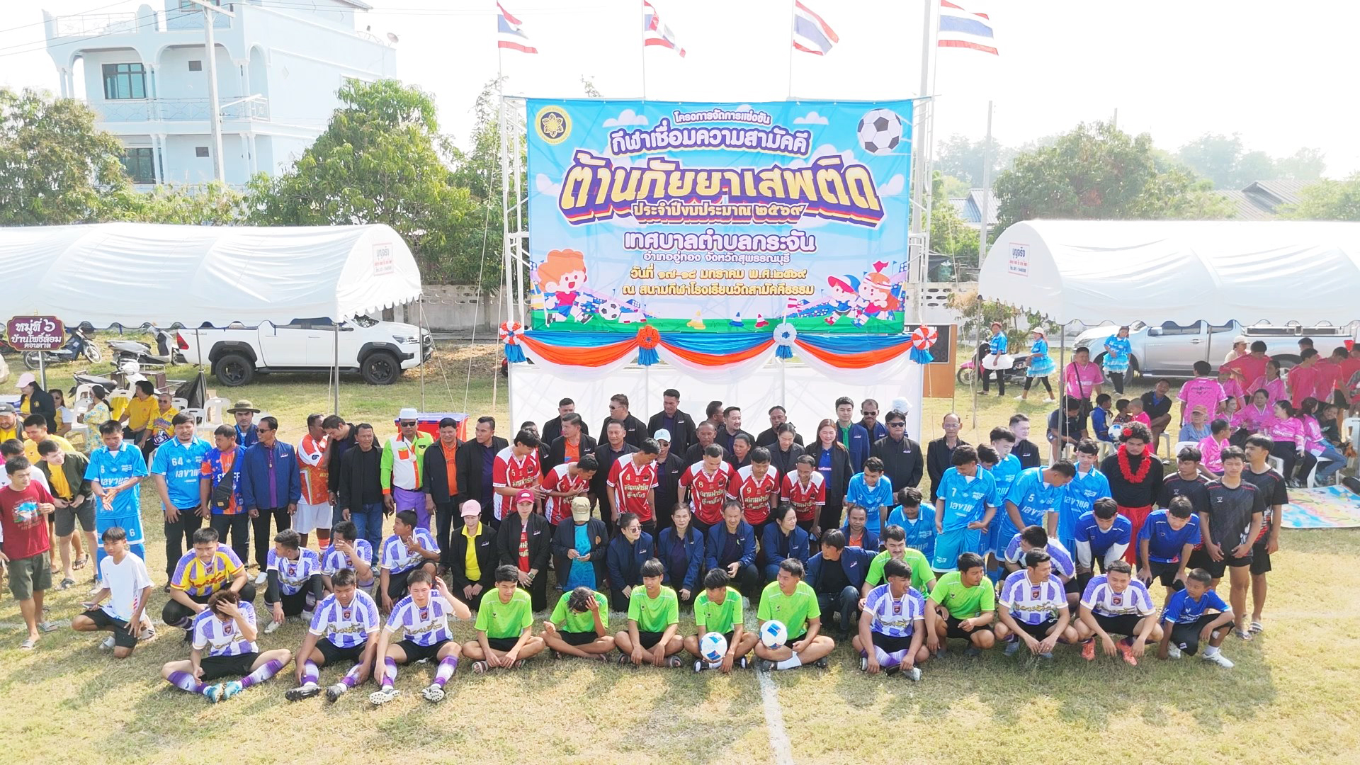 ที่สนามโรงเรียนวัดสามัคคีธรรม อำเภออู่ทอง จังหวัดสุพรรณบุรี นายมนัส บริสุทธิ์ นายกเทศบาลตำบลกระจัน เป็นประธานเปิดการแข่งขันกีฬาเชื่อมความสามัคคีต้านภัยยาเสพติด ประจำปี 2569 เพื่อส่งเสริมให้เด็ก เยาวชน และประชาชนในชุมชนได้มีทักษะในการเล่นกีฬา มีน้ำใจนักกีฬา รู้แพ้ รู้ชนะ รู้อภัย เนื่องจากการเล่นกีฬาจะทำให้ มีสุขภาพ พลานามัย แข็งแรงสมบูรณ์ และรู้จักใช้เวลาว่างให้เกิดประโยชน์ หลีกเลี่ยงห่างไกลจากยาเสพติด เพื่อประโยชน์ต่อตัวเองสังคม และประเทศชาติ โดยมีนายสุชาติ รักอู่ ผู้อำนวยการกองช่าง รักษาราชการแทนปลัดเทศบาลตำบลกระจัน พร้อมคณะผู้บริหาร สมาชิกเทศบาลดำบลกระจัน ข้าราชการ เจ้าหน้าที่ กำนัน ผู้ใหญ่บ้าน ผู้นำชุมชน นักกีฬาและชาวบ้านตำบลกระจัน 10 หมู่บ้าน ร่วมกิจกรรมกันอย่างสนุกสนาน