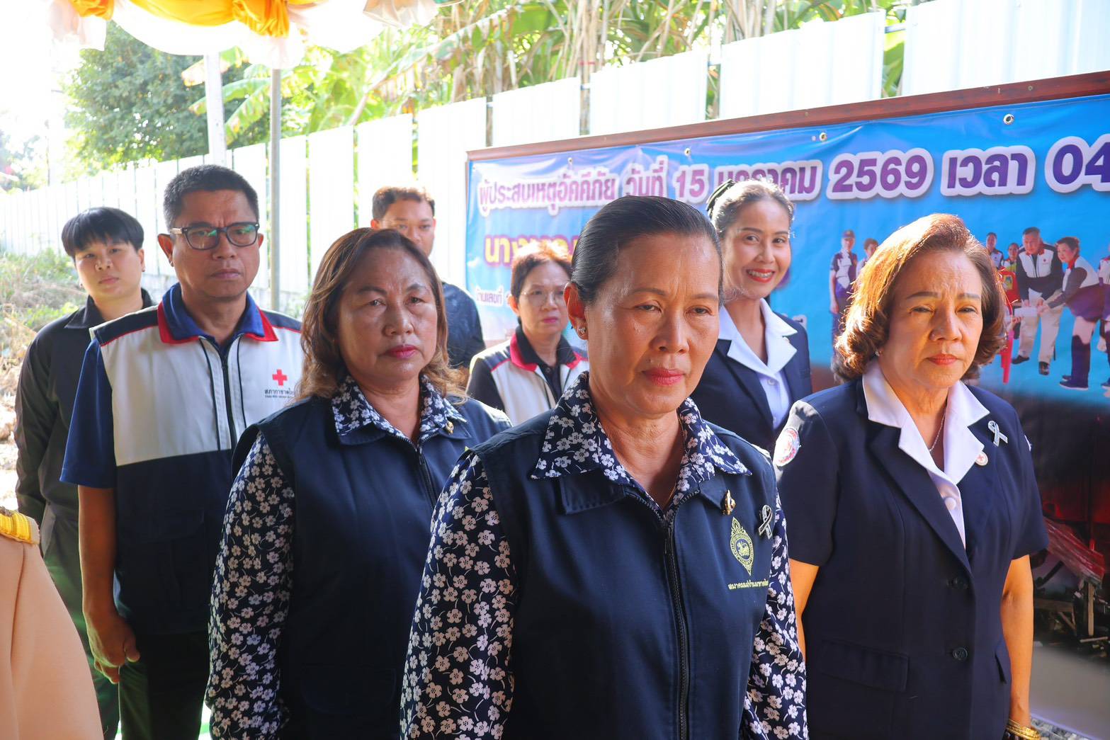 ชื่อ นางบุญส่ง ปานบุญ บ้านเลขที่ 15/3 หมู่ 5 ตำบลบางระจัน อำเภอค่ายบางระจัน จังหวัดสิงห์บุรี ซึ่งประสบอัคคีภัยบ้านพักอาศัยเสียหายทั้งหลัง โดยมี หัวหน้าสำนักงานป้องกันและบรรเทาสาธารณภัยจังหวัดสิงห์บุรี กล่าวรายงาน โดยมี หัวหน้าส่วนราชการ กรรมการเหล่ากาชาดจังหวัดสิงห์บุรี สมาชิกชมรมแม่บ้านมหาดไทยจังหวัดสิงห์บุรี ปลัดอาวุโสอำเภอค่ายบางระจันรักษาราชการแทนนายอำเภอค่ายบางระจัน ปลัดอำเภอ ผู้บริหารท้องถิ่น ข้าราชการ กำนัน ผู้ใหญ่บ้าน และเจ้าหน้าที่เหล่ากาชาดจังหวัดสิงห์บุรี ร่วมพิธีดังกล่าว