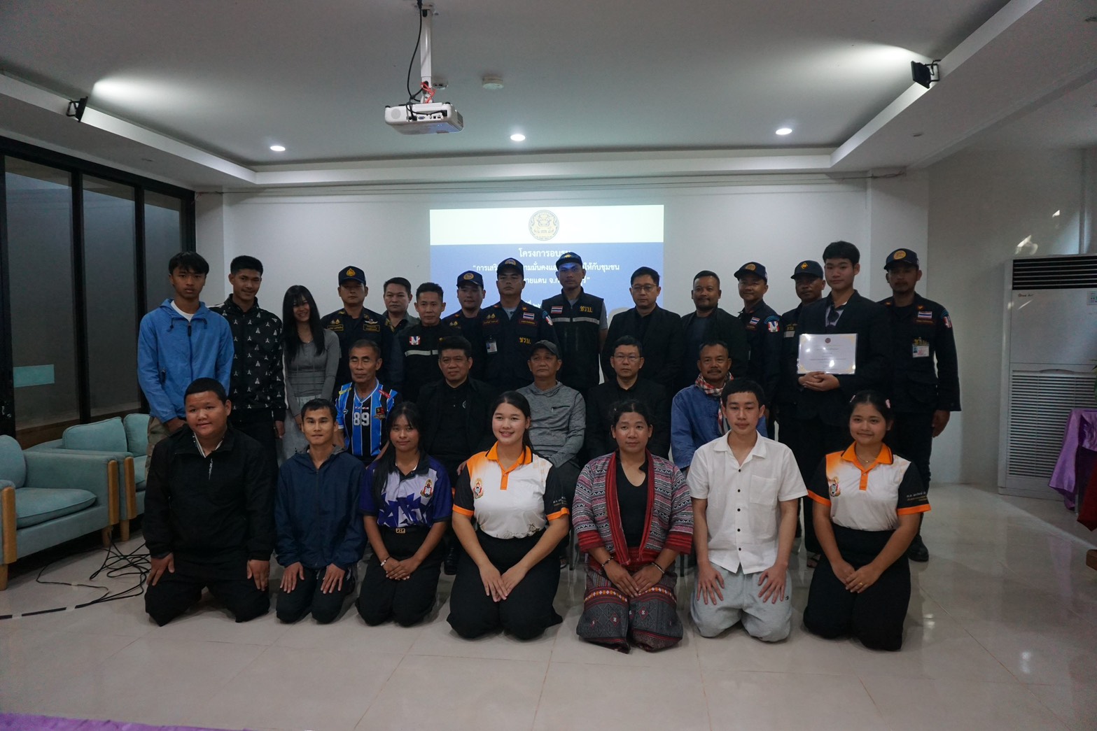 โดยมีนายเชษฐ์ พันทวี เป็นประธานเปิดและปิดการอบรม และมีผู้เข้ารับการอบรม เป็นประชาชนในพื้นที่ อำเภอเมือง และ อำเภอสังขละบุรี จังหวัดกาญจนบุรี จำนวน 25 คนกิจกรรมการอบรม มีการบรรยายหัวข้อ “ภัยคุกคามจากการสู้รบในเมียนมา และการเตรียมความพร้อมรับมือกับเหตุฉุกเฉิน” โดย ร.อ.ธนะวรรธน์ วะน้ำค้าง กองกำลังสุรสีห์ รวมทั้ง หัวข้อ “ภัยคุกคามและอาชญากรรมรูปแบบใหม่ที่กระทบต่อความมั่นคง” โดยนายธีระยุทธ ธีรประถัมภ์ ผอ.สปก.41 และหัวข้อ “ความรู้เบื้องต้นเกี่ยวกับเครือข่ายภาคประชาชน” โดยนายสังวร บุญไสย รอง ผอ.ศป.ข.ภาค 4