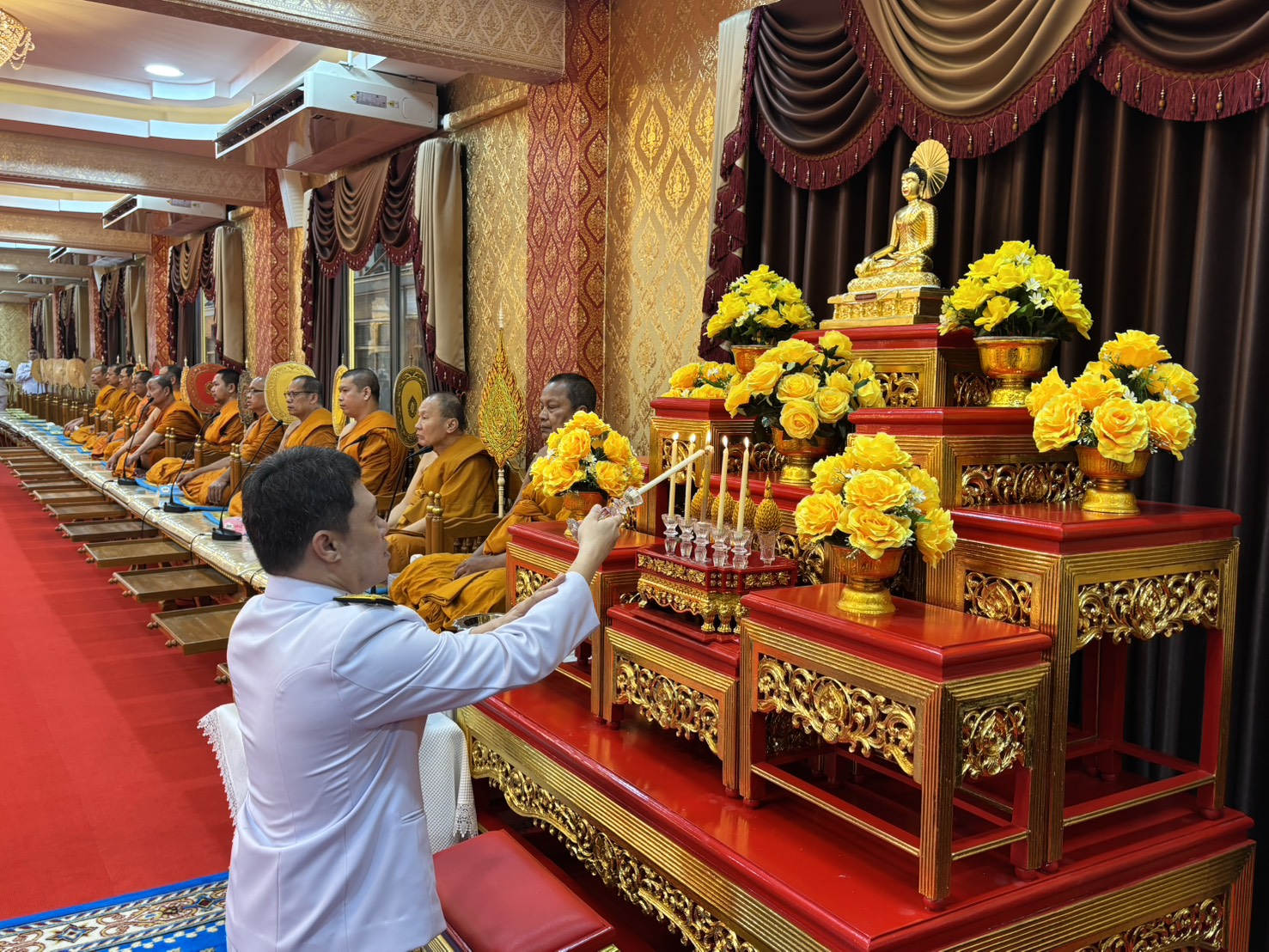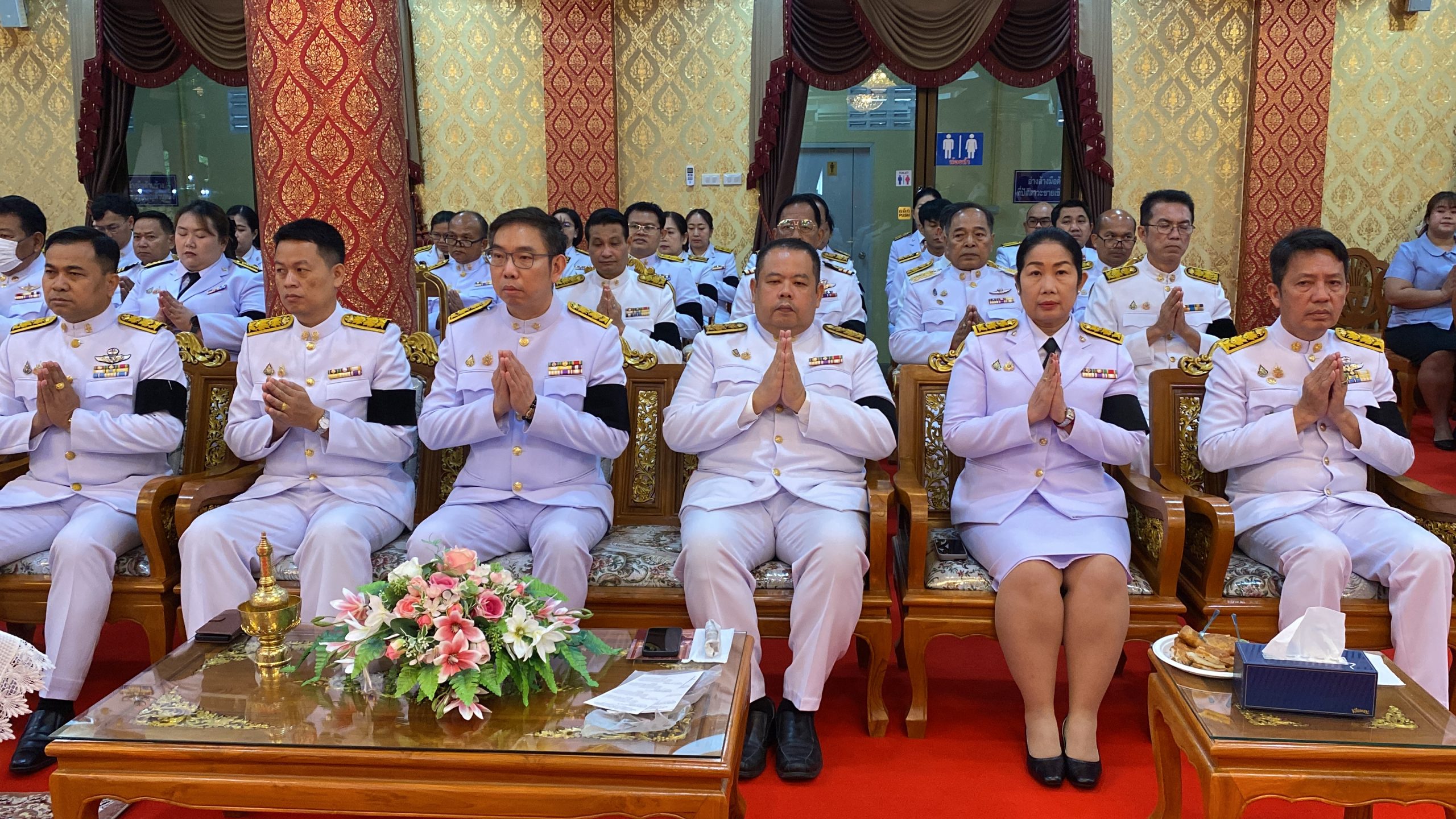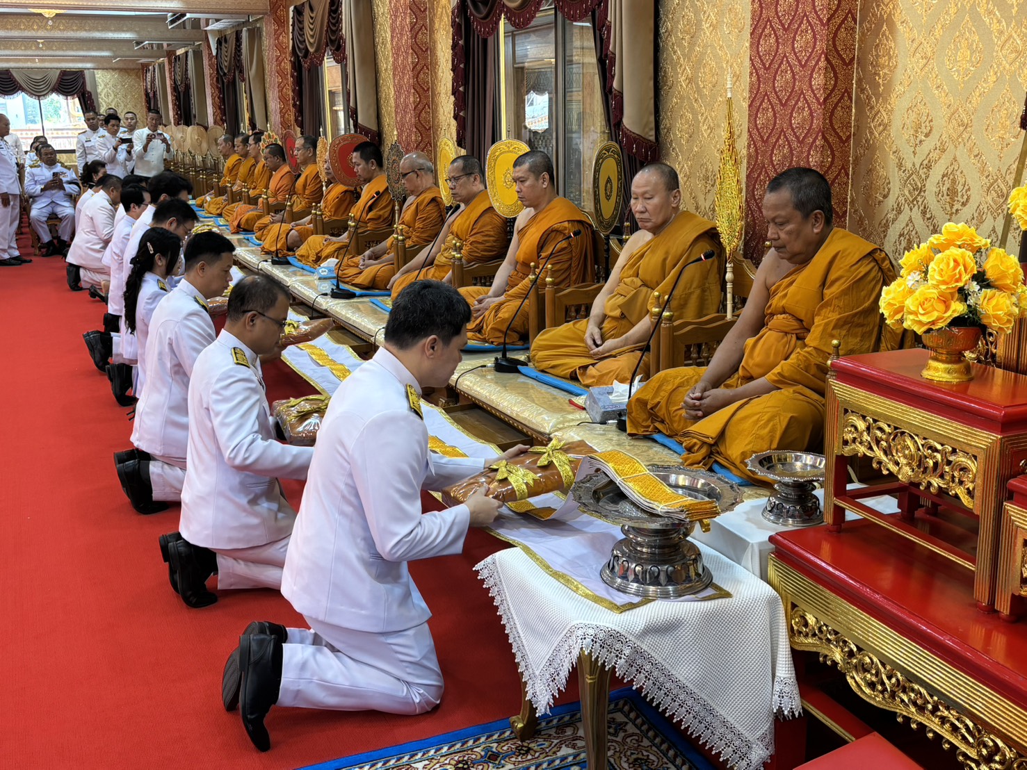 เพื่ออุทิศถวายแด่สมเด็จพระนางเจ้าสิริกิติ์ พระบรมราชินีนาถ พระบรมราชชนนีพันปีหลวง โดยมี นายขจิตเวช แก้วน้อย นายอำเภอบางพลี เป็นประธานฝ่ายฆราวาส จุดเทียนธูปบูชาพระรัตนตรัย นายแพทย์ประภาส ผูกดวง นายแพทย์สาธารณสุขจังหวัดสมุทรปราการ จุดเครื่องทองน้อย หน้าโต๊ะหมู่บูชาพระบรมฉายาลักษณ์ของสมเด็จพระนางเจ้าสิริกิติ์ พระบรมราชินีนาถ พระบรมราชชนนีพันปีหลวง โดยมี พระวชิรคณาทร เจ้าคุณแจ้ ดร.เจ้าอาวาสวัดบางพลีใหญ่กลาง เป็นประธานฝ่ายสงฆ์ พร้อมด้วยคณะพระสงฆ์ 12 รูป สวดเจริญพระพุทธมนต์ จากนั้นประกอบพิธีทอดผ้าไตรบังสุกุล พระสงฆ์สดับปกรณ์ กรวดน้ำ เพื่อถวายเป็นพระราชกุศล