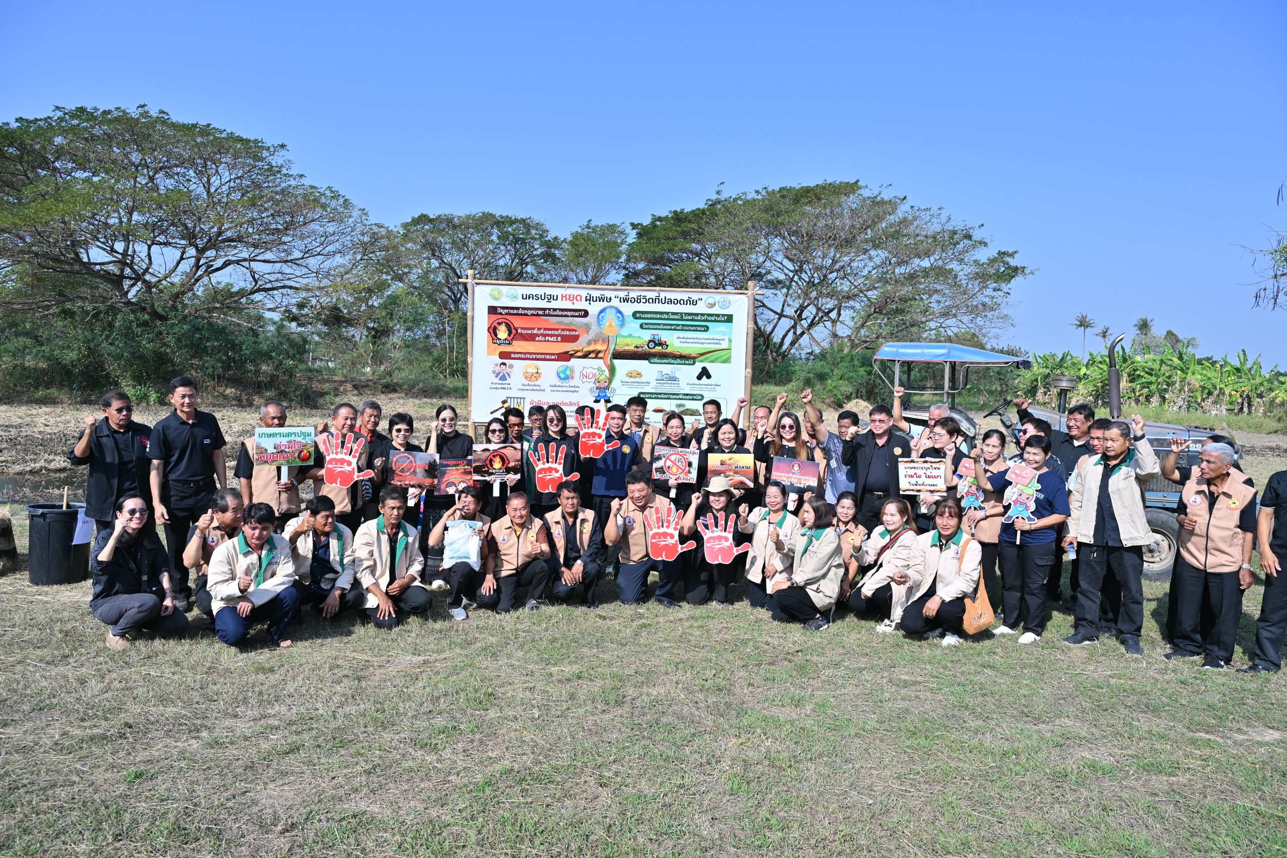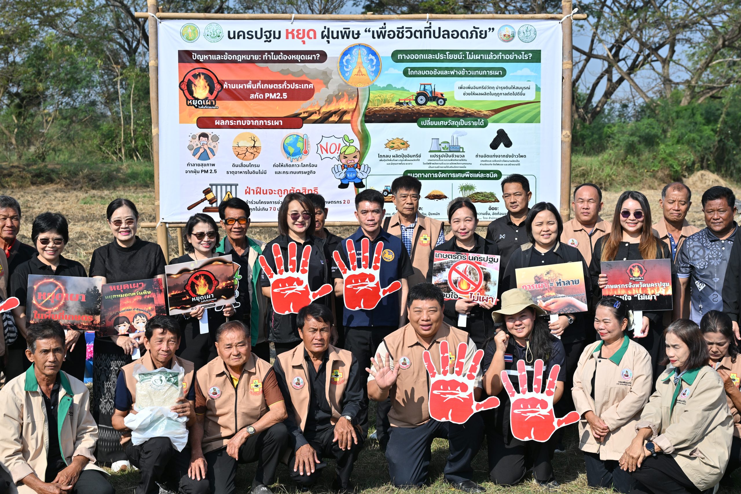นอกจากนี้ สถานีพัฒนาที่ดินนครปฐม ร่วมกับ หน่วยงานสังกัดกระทรวงเกษตรและสหกรณ์จังหวัดนครปฐม อาทิ สำนักงานเกษตรจังหวัด สำนักงานปฏิรูปที่ดินจังหวัด สำนักงานเกษตรและสหกรณ์ ซึ่งเป็นหน่วยงานหลักที่ร่วมกิจกรรมการรณรงค์งดเผาตอชังพืชและการลดฝุ่นพิษ ต่างๆ ให้กับชาวจังหวัดนครปฐม โดยมีกิจกรรมรณรงค์เพิ่มเติม ให้กับพี่น้องชาวหมอดินอาสาจังหวัดนครปฐม เพื่อนำไปถ่ายทอดและนำไปเผยแพร่ ให้กับเกษตรกรในพื้นที่ ได้ทราบถึงข้อมูลการงดเผาตอซัง รวมทั้งวิธีการจัดการเศษพืชแต่ละชนิดอย่างไร ให้เกิดประโยชน์ ไม่ก่อให้เกิดมลพิษต่อไป