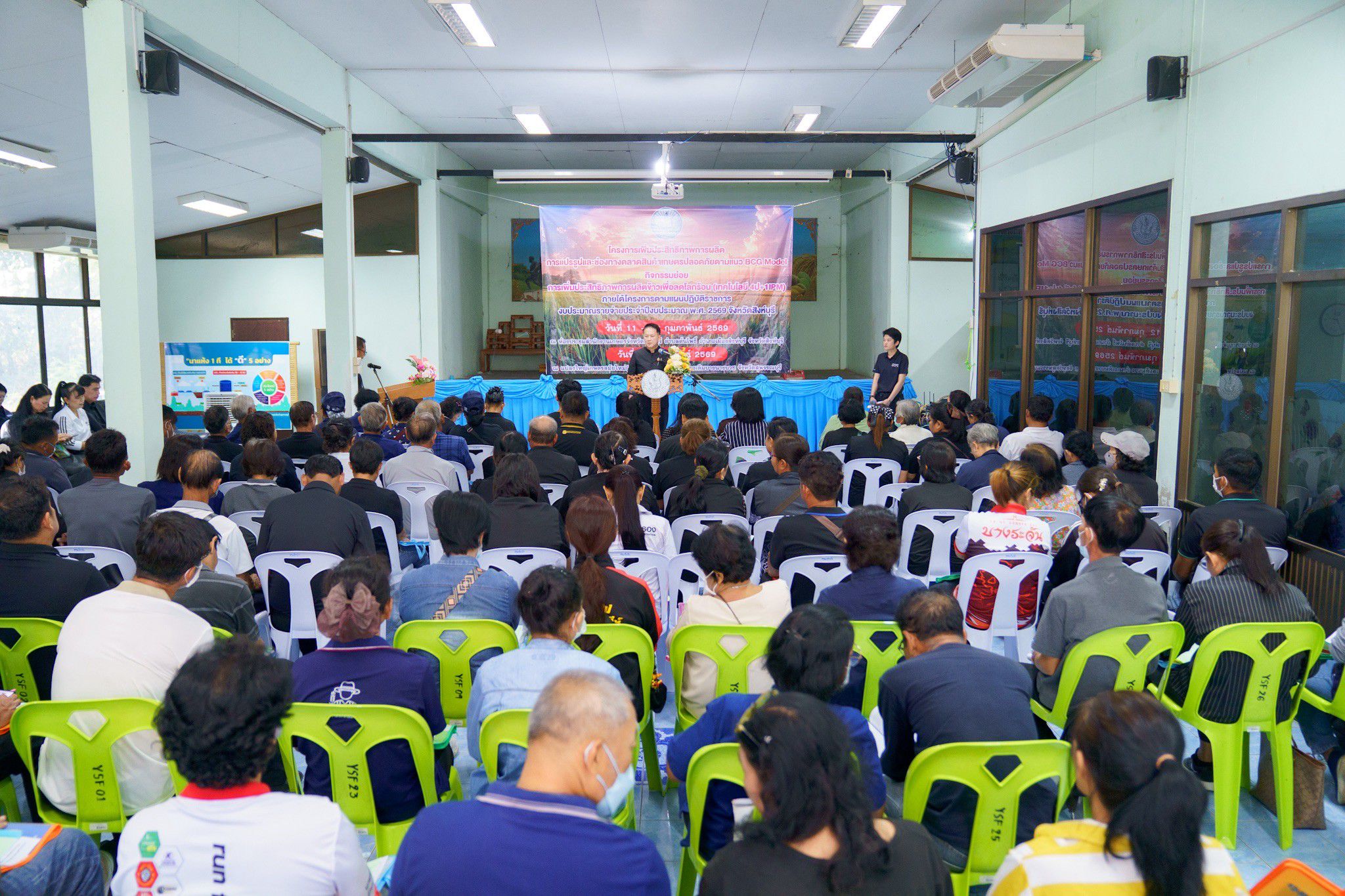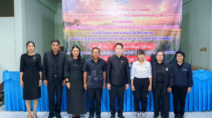 วันพุธที่ 11 กุมภาพันธ์ 2569 นายสหชัย แจ่มประสิทธิ์สกุล รองผู้ว่าราชการจังหวัดสิงห์บุรี เป็นประธานเปิดกิจกรรมการเพิ่มประสิทธิภาพการผลิตข้าวเพื่อลดโลกร้อน (เทคโนโลยี 4 ป + 1 IPM) ภายใต้โครงการเพิ่มประสิทธิภาพการผลิต การแปรรูป และช่องทางตลาดสินค้าเกษตรตามแนว BCG Model