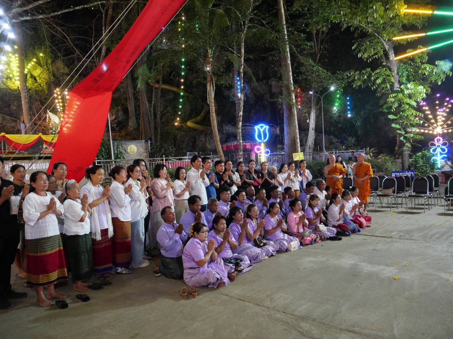 กาญจนบุรี พุทธศาสนิกชนและศิษยานุศิษย์ร่วมพิธีอัญเชิญผ้าแดงขึ้นห่มองค์เจดีย์ชาย เพื่อบูชาพระบรมสาริกธาตุ วัดปรังกาสี อำเภอทองผาภูมิ จังหวัดกาญจนบุรี