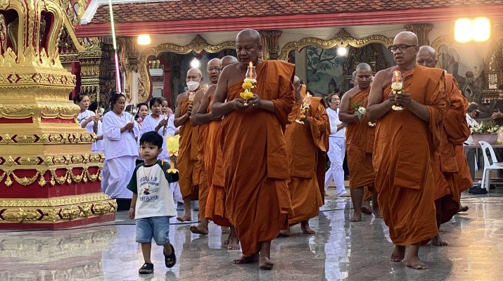 *****พิธีจุดประทีปบูชา เวียนเทียนรอบอุโบสถ เนื่องในวันมฆบูชา หรือ วันจาตุรงคสันนิบาต” หมายถึง “การประชุมด้วยองค์ 4” เนื่องด้วยเหตุอัศจรรย์ 4 ประการที่เกิดขึ้นในวันนี้ คือ ตรงกับวันเพ็ญ ขึ้น 15 ค่ำ เดือน 3 ซึ่งพระจันทร์เสวยมาฆฤกษ์ การประกอบพิธีจุดประทีปและเวียนเทียนรอบอุโบสถ ในวันมาฆบูชา เป็นการบูชาพระรัตนตรัยที่สำคัญ พุทธศาสนิกชนจะแต่งกายชุดขาวหรือสุภาพ นำดอกไม้ ธูป เทียน มาเวียนขวา (ประทักษิณา) รอบพระอุโบสถ 3 รอบ เพื่อระลึกถึงพระพุทธคุณ พระธรรมคุณ พระสังฆคุณ เพื่อสืบสานประเพณีและทำจิตใจให้ผ่องใส