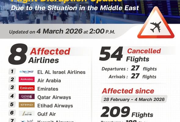 Suvarnabhumi Airport Reports Flight Impacts Due to the Situation in the Middle East