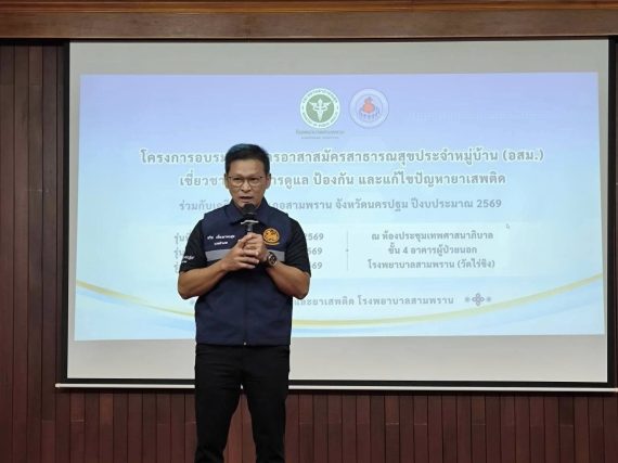 นายทวิช เที่ยวมาพบสุข นายอำเภอสามพราน เป็นประธานในพิธีเปิดโครงการหลักสูตรอาสาสมัครสาธารณสุขประจำหมู่บ้าน (อสม.) เชี่ยวชาญด้านการดูแลป้องกัน และแก้ไขปัญหายาเสพติด รู่นที่ 2 ระหว่างวันที่ 10-11มีนาคม2569