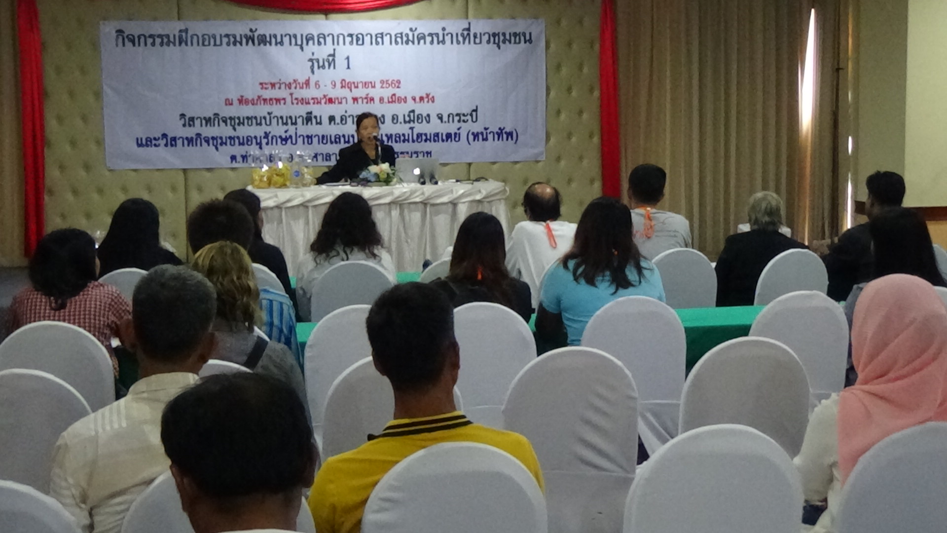 สำนักงานการท่องเที่ยวและกีฬาจังหวัดตรัง จัดกิจกรรมฝึกอบรมพัฒนาบุคลากรอาสาสมัครนำเที่ยวชุมชนจังหวัดตรัง รุ่นที่ 1 เพื่อต้องการให้ชุมชนสร้างแนวคิดในการปรับปรุงแหล่งท่องเที่ยวในชุมชนที่แปลกใหม่ดึงดูดนักท่องเที่ยว รวมถึงผลิตสินค้าจำหน่ายให้กับนักท่องเที่ยว ซึ่งเป็นการสร้างรายได้ให้กับชุมชน