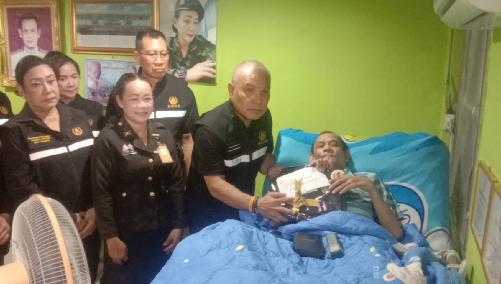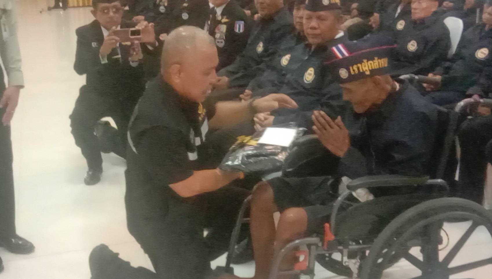 จาก พันเอก คทาวุธ ชัยยัง รองผู้บัญชาการมณฑลทหารบกที่ 19 (2) ผู้แทนผู้บัญชาการมณฑลทหารบกที่ 17 ในฐานะหัวหน้าสำนักงานสงเคราะห์ทหารผ่านศึกเขตสุพรรณบุรี และ นายภัทรากร แจ้งอิ่ม รองหัวหน้า