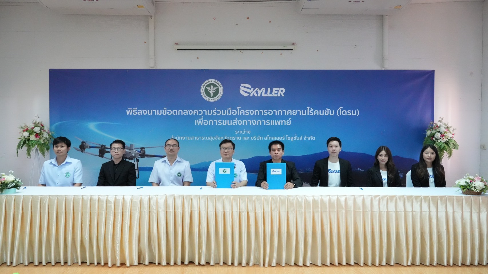 บริษัท สไกลเลอร์ โซลูชั่นส์ จำกัด หรือ Skyller Solutions ผู้เชี่ยวชาญด้านการให้บริการอากาศยานไร้คนขับ (UAV) หรือโดรน ประกาศลงนามบันทึกข้อตกลงความร่วมมือ (MOU) ร่วมกับสำนักงานสาธารณสุขจังหวัดตราด (สสจ.ตราด)