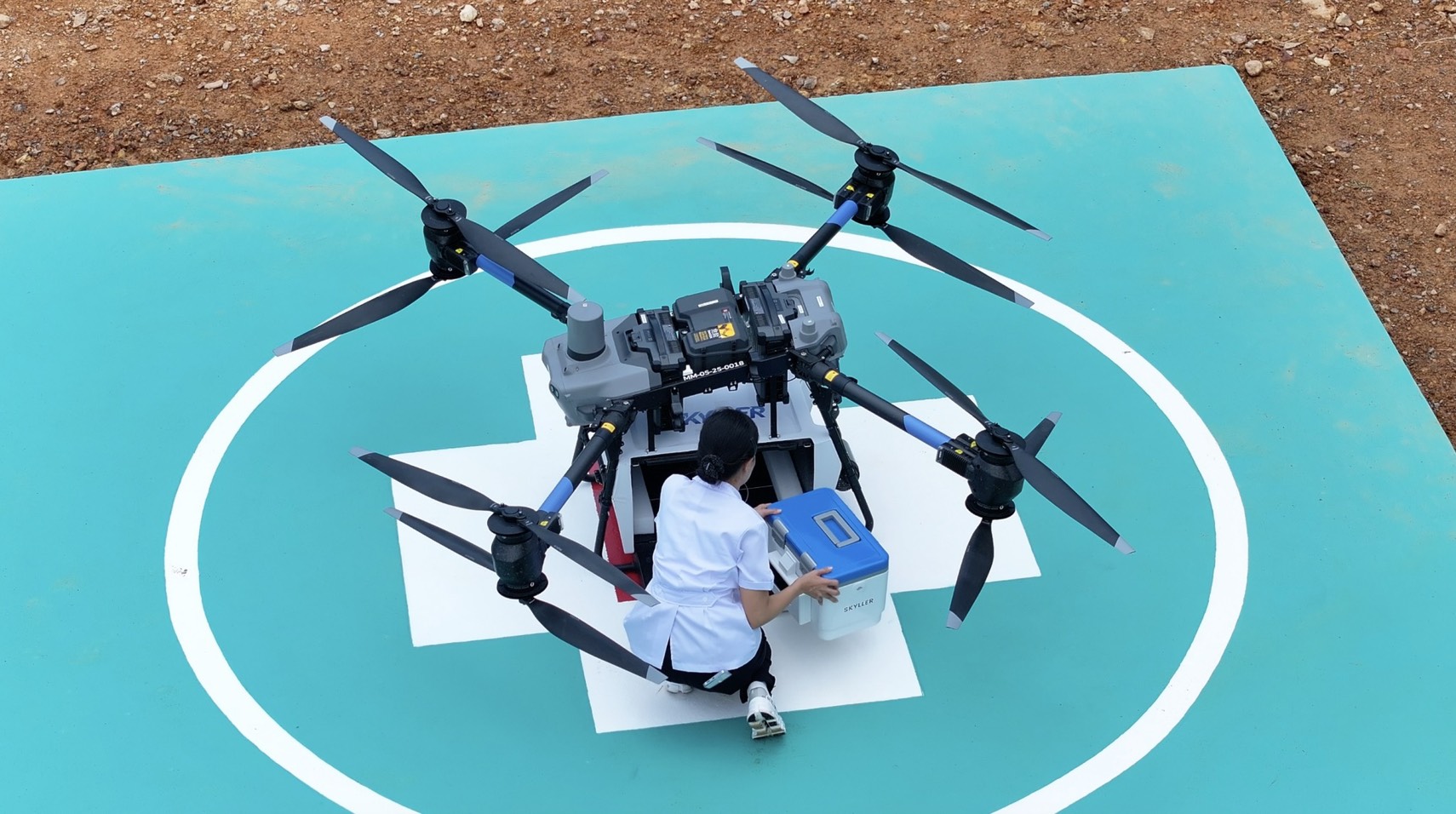 1. Skyller Medical Drone Delivery: โดรนขนส่งเวชภัณฑ์ทางการแพทย์ ที่ทำหน้าที่เป็นพาหนะหลัก ในการลำเลียงเวชภัณฑ์ทางอากาศ ก้าวข้ามข้อจำกัดทางภูมิศาสตร์