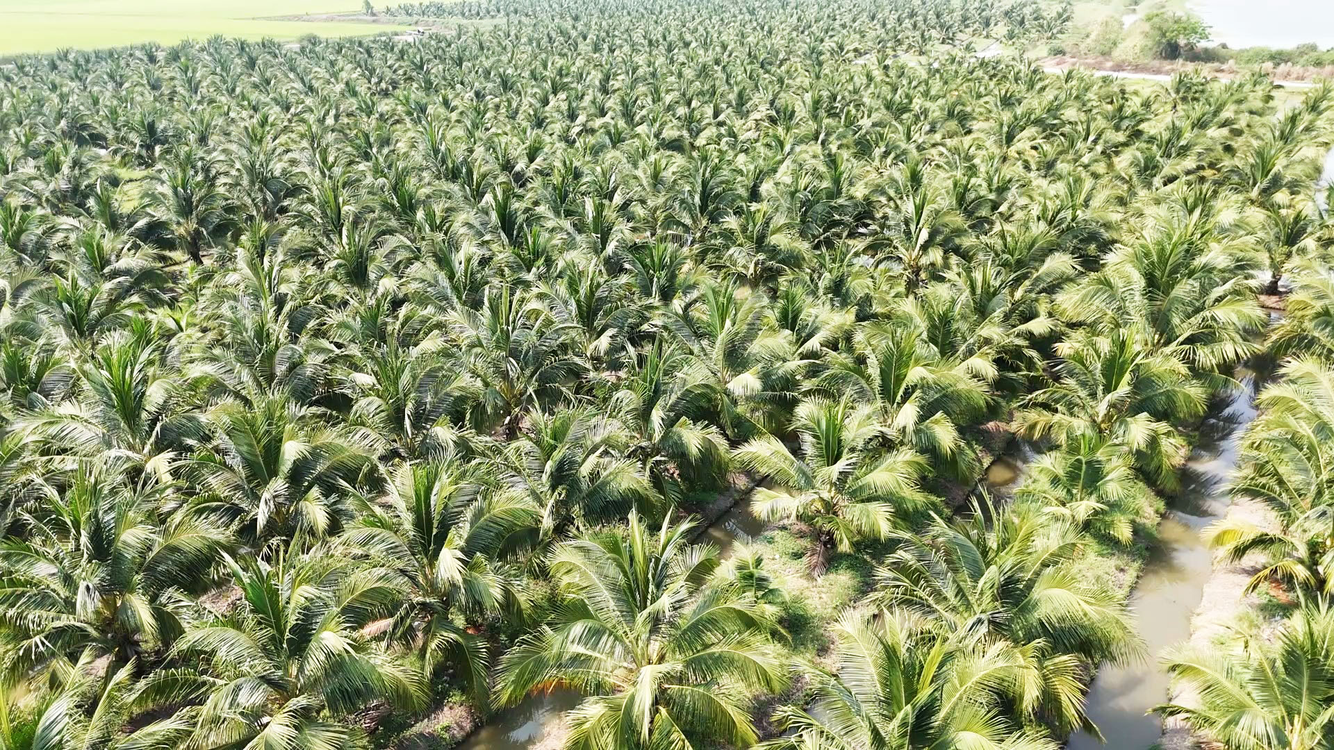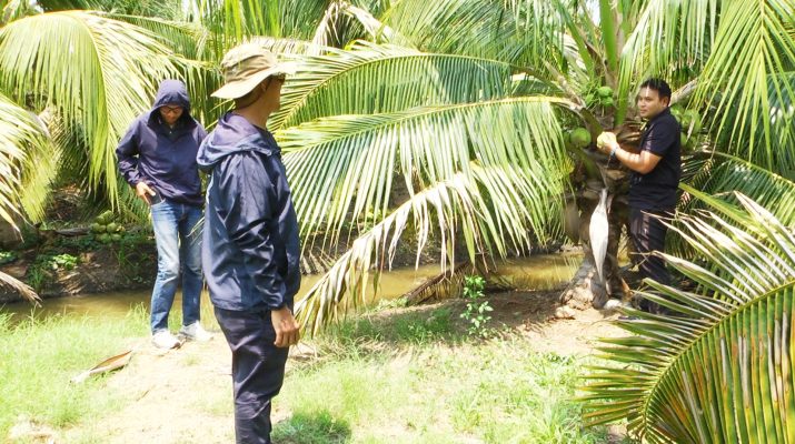 ที่จังหวัดสุพรรณบุรี ผู้สื่อข่าวได้ลงพื้นที่ไปที่ สวนมะพร้าวเดอะฟอร์เรสท์ฟาร์ม ตำบลจระเข้ใหญ่ อำเภอบางปลาม้า เนื้อที่ 80 ไร่ และที่ตำบลสาลี อำเภอบางปลาม้า จังหวัดสุพรรณบุรี เนื้อที่ 120 ไร่ที่กำลังออกผลผลิตเกือบเต็มพื้นที่ มีคนงานกำลังรดน้ำดูแล บางส่วนกำลังตัดลำเลียงมะพร้าวอยู่ในร่องสวนมะพร้าวส่วนมากกองอยู่โคนต้นมะพร้าวบนร่องสวน