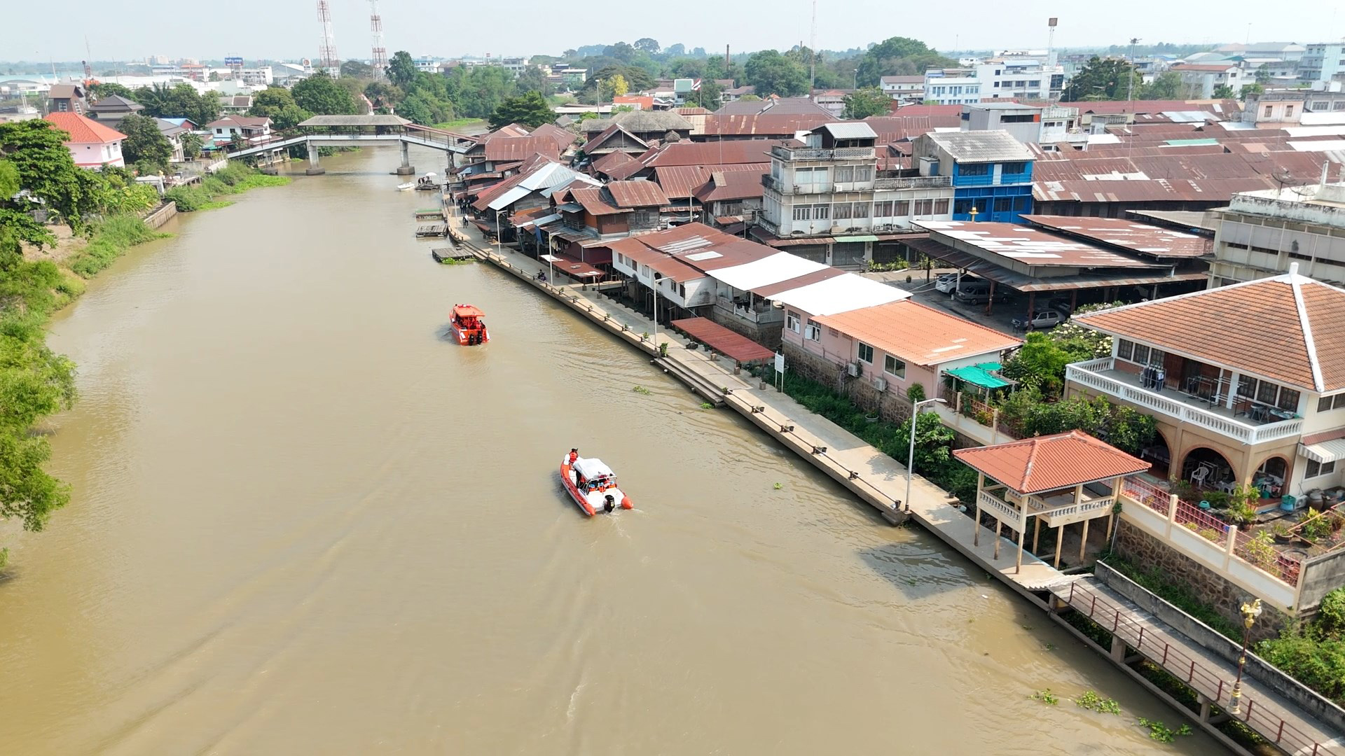 จากนั้นคณะ ไปลงเรือที่หน้าวัดบางขวาก ตำบลย่านยาว อำเภอสามชุก มีนางดวงพร คุณากรวงศ์ นายอำเภอสามชุก นายสุวัฒน์ ปานเพ็ชร นายกเทศมนตรีตำบลสามชุก ให้การต้อนรับ นำคณะสำรวจแม่น้ำท่าจีน เพื่อประกอบการพิจารณาแนวทางแก้ไขแม่น้ำตื้นเขินและตรวจแนวเส้นทางการท่องเที่ยวทางน้ำในแม่น้ำท่าจีน ระยะทาง 5 กิโลเมตร ไปขึ้นท่าเรือตลาดสามชุกร้อยปี และคณะฯได้เดินเยี่ยมชมตลาดสามชุกร้อยปี พบปะพ่อค้า แม่ค้าในตลาดสามชุกร้อยปี