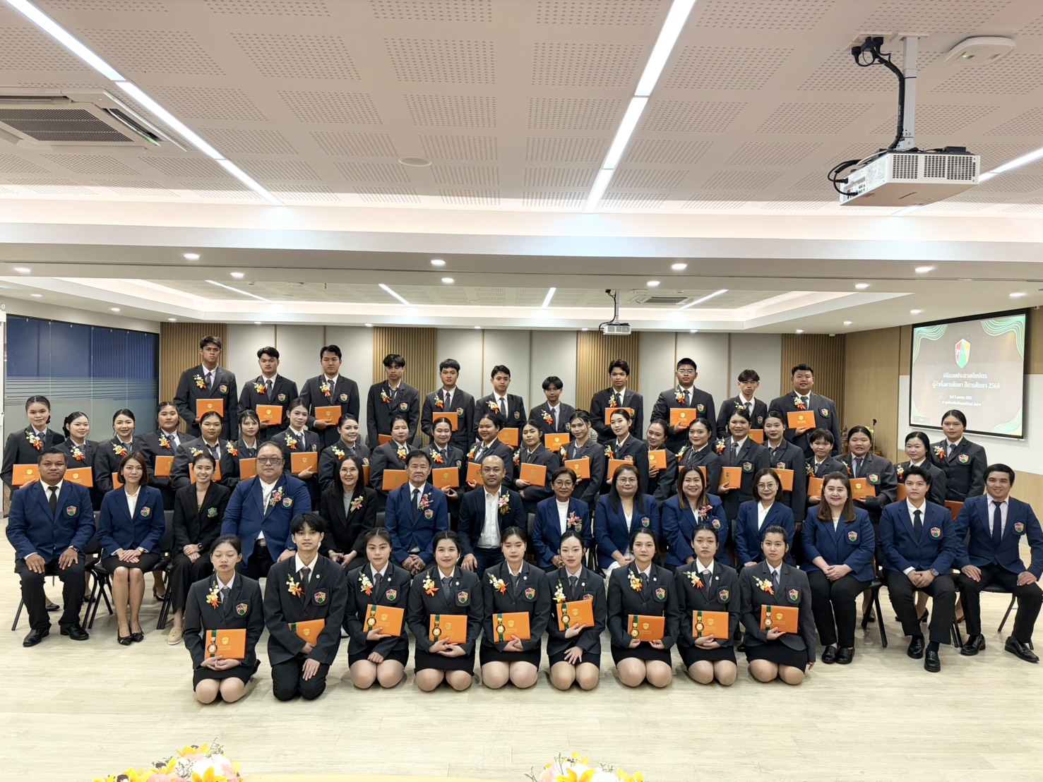 ก่อนเริ่มพิธีคณะผู้ร่วมงานได้ยืนสงบนิ่งไว้อาลัยแด่สมเด็จพระนางเจ้าสิริกิติ์ พระบรมราชินีนาถ พระบรมราชชนนีพันปีหลวง เพื่อรำลึกในพระมหากรุณาที่คุณอันหาที่สุดมิได้ จากนั้น นางรุ่งนภา เขื่อนอุ่น กล่าวรายงานมอบเกียรติบัตรเชิดชูครูประจำปีการศึกษา2568 และนางสาวนิภาพร เสนสกุล กล่าวรายงานว่าศูนย์การเรียนปัญญาภิวัฒน์ เป็นสถานศึกษาแบบศูนย์การเรียนในสถานประกอบการ ได้ขออนุญาตเปิดศูนย์การเรียนปัญญาภิวัฒน์ เมื่อปีการศึกษา2549 ในเขตกรุงเทพมหานครและภูมิภาคจำนวน 20 ศูนย์การเรียน ภายใต้การกำกับดูแลของสำนักงานคณะกรรมการการศึกษาขั้นพื้นฐาน ดำเนินการสอนตามหลักสูตรประกาศนียบัตรวิชาชีพ สาขาวิชาบริหารธุรกิจสมัยใหม่ จัดการเรียนการสอนในแบบทวิภาคี เรียนรู้ภาคทฤษฎีควบคู่ภาคปฏิบัติ พัฒนาผู้เรียนอย่างมีคุณภาพด้านอาชีพให้สอดคล้องกับความต้องการของสถานประกอบการเป็นสำคัญ โดยผู้เรียนได้รับทุนการศึกษาตลอดหลักสูตร ระหว่างฝึกปฏิบัติงานมีรายได้และเมื่อจบการศึกษามีงานรองรับ ในปีการศึกษา2568 มีผู้สำเร็จการศึกษาจำนวน 43คน