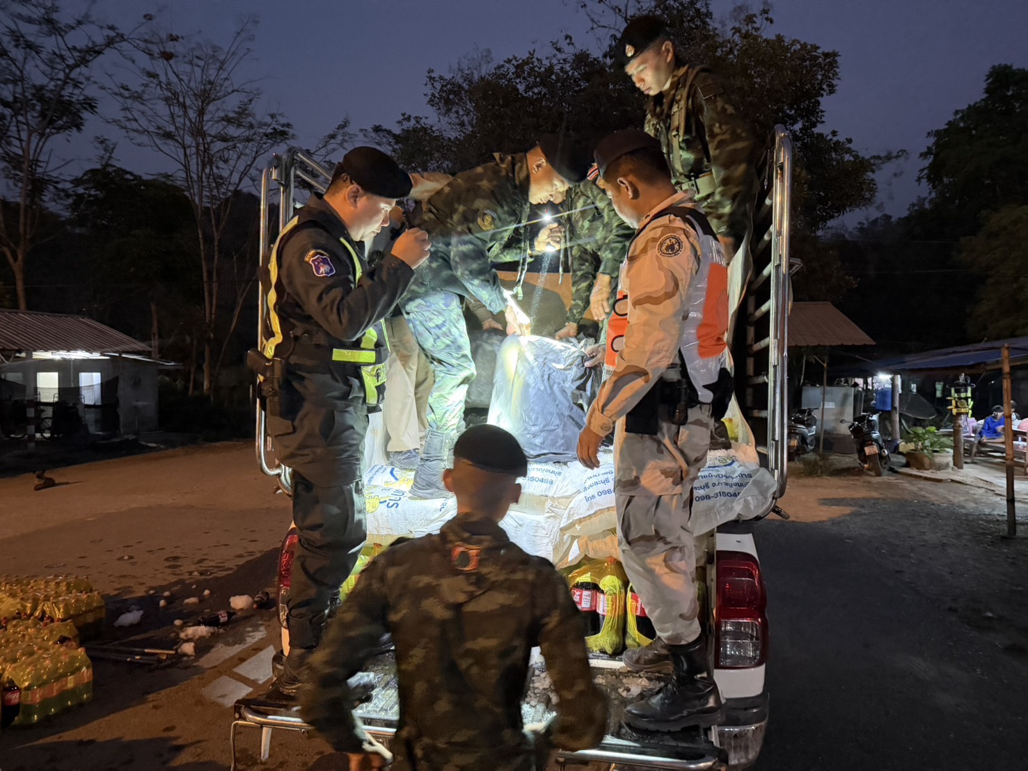 เมื่อเวลา 19.00 น.วันที่ 4 เมษายน 2569 พลตรี ณัฏฐพงศ์ อัศวินวงศ์ ผู้บัญชาการกองพลทหารราบที่ 9 ในฐานะ ผู้บัญชาการกองกำลังสุรสีห์ บูรณาการร่วมกับ นางสาววริษฐา สงวนเสริมศรี ผู้ว่าราชการจังหวัดกาญจนบุรี ได้รับแจ้งจากแหล่งข่าวว่า มีขบวนการลักลอบขนลำเลียงน้ำมันเชื้อเพลิงโดยซุกซ่อนไปกับสินค้าที่จะนำส่งออกไปประเทศเพื่อนบ้าน จึงสั่งการให้ พันเอก พรรณศักย์ เพรียวพานิช ผู้บังคับหน่วยเฉพาะกิจลาดหญ้า กองกำลังสุรสีห์ พร้อมด้วย พันเอก ปิยะเณศร์ ภัทรศาศวัตวงษ์ รองผู้บังคับหน่วยเฉพาะกิจลาดหญ้า ประสาน พ.ต.อ.สันติ พิทักษ์สกุล ผกก.สภ.สังขละบุรี และเจ้าหน้าที่หน่วยต่างๆ เพิ่มความเข้มงวดในการตรวจค้นปราบปรามจับกุมอย่างเด็ดขาด