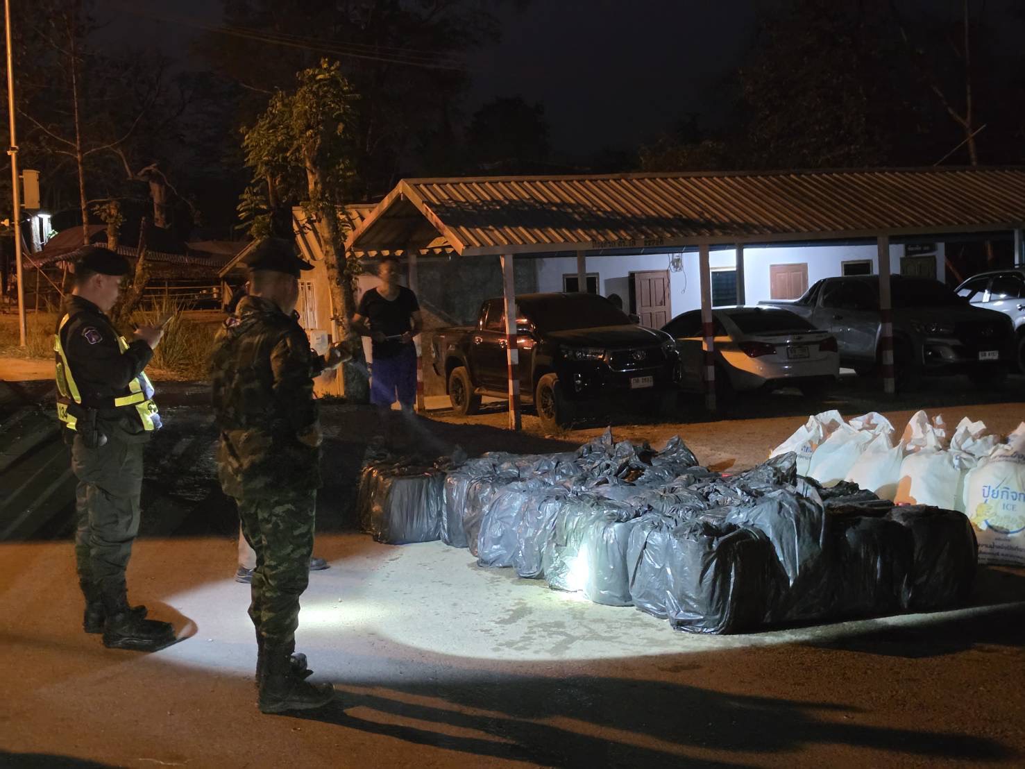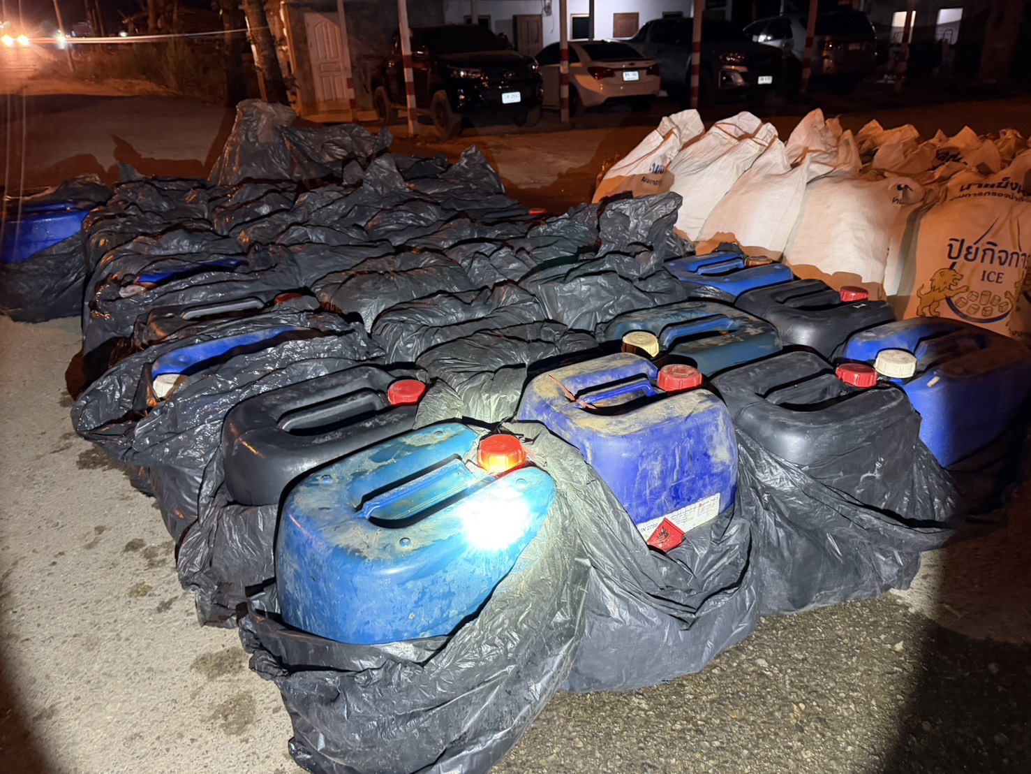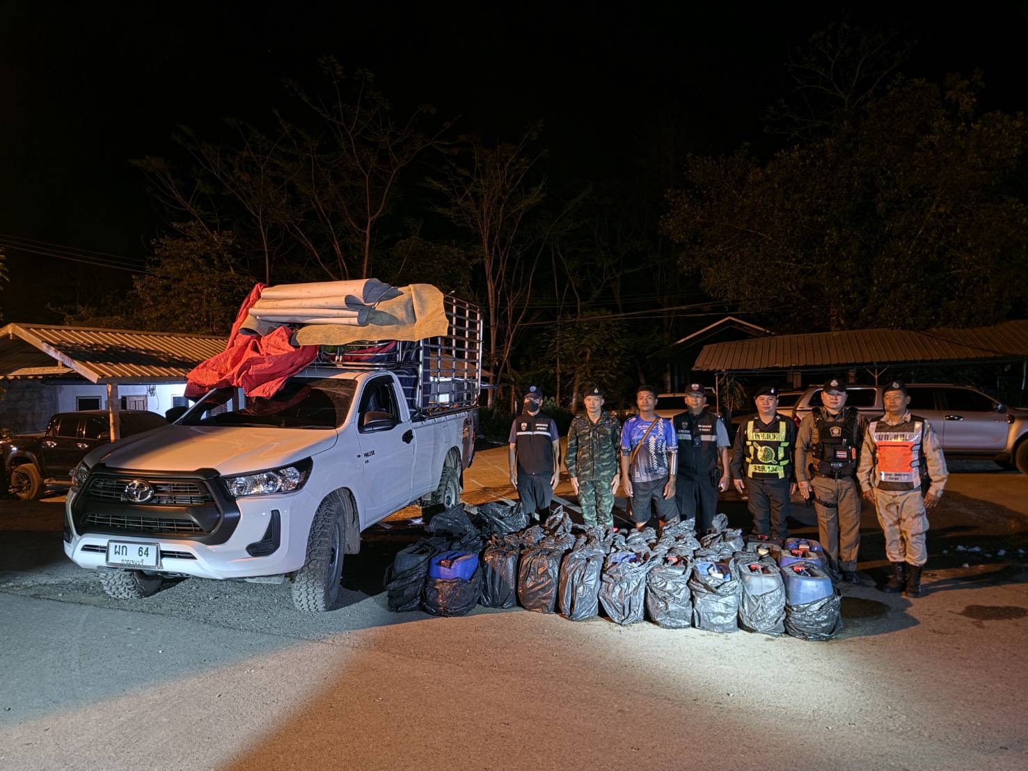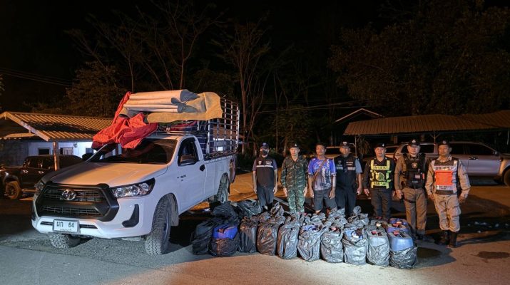 กาญจนบุรี ทหาร ฉก.ลาดหญ้า/ร.29 จับชายลักลอบซุกน้ำมัน 1,260 ลิตร ซ่อนท้ายกระบะขนน้ำแข็ง เตรียมลักลอบส่งขายข้ามชายแดนเมียนมา ลิตรละ 100 บาท