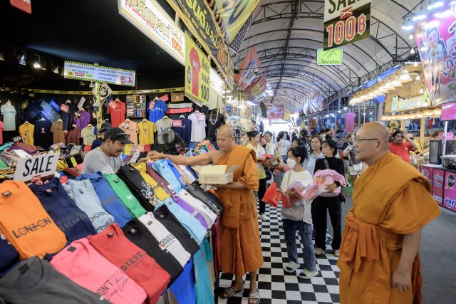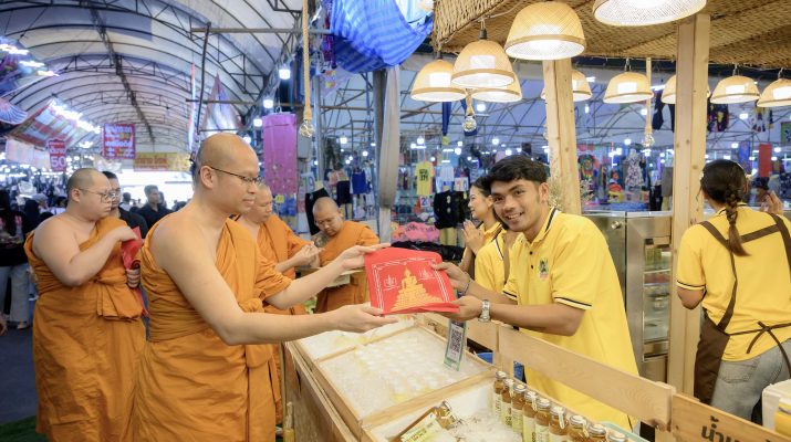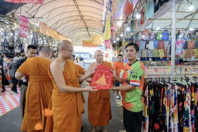 พ่อค้า แม่ค้าขายงานวัดไร่ขิง สุดปลื้ม ผู้ช่วยเจ้าอาวาสวัดไร่ขิง เดินแจกผ้ายันต์และวัตถุมงคลที่ระลึก งานประจำปีวันสุดท้าย