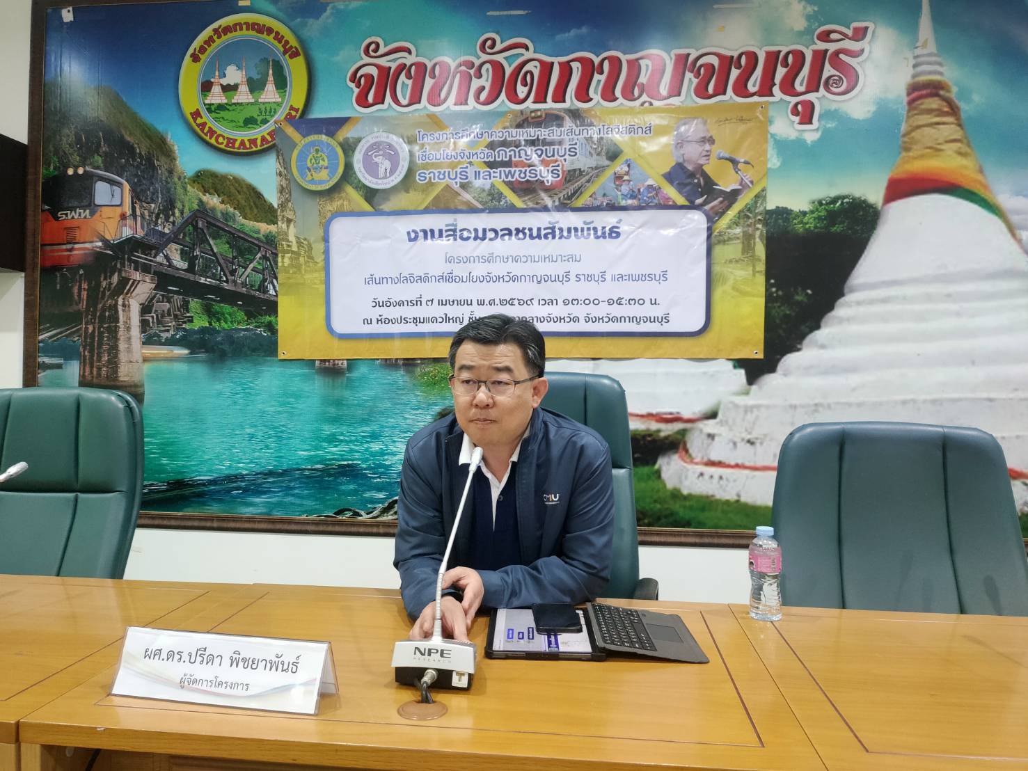ผศ.ดร.ปรีดา พิชยาพันธ์ พร้อมด้วย วิศวกร ดรมทางหลวงชนบท และหน่วยงานที่เกี่ยวข้อง พร้อมด้วยสื่อมวลชน จาก 3 จังหวัดได้แก่ จังหวัดกาญจนบุรี จังหวัดราชบุรี และ จังหวัดเพชรบุรี จำนวน 50 คน เข้าร่วมประชุมในครั้งนี้ ” งานสื่อมวลชนสัมพันธ์ ” ตามโครงการศึกษาความเหมาะสมเส้นทางโลจิสติกส์เชื่อมโยง 3 จังหวัด โดยมี ผศ.ดร.ปรีดา พิช ยาพันธ์ มผู้จัดการโครงการฯ กล่าวถึงวัตถุประสงค์ของการจัดประชุม กรมทางหลวงชนบทดำเนินการศึกษาความเหมาะสมเส้นทาง 3 จังหวัด ชื่อเส้นทาง “ตรีบุรี ” 3 จังหวัดเป็นระยะทาง137 กิโลเมตร