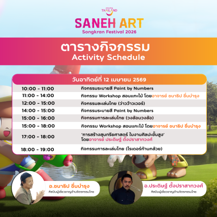 โดยเปิดพื้นที่ให้ศิลปินและนักท่องเที่ยวได้มีปฏิสัมพันธ์ร่วมกันวันที่ 11-15 เมษายน69 ผ่านกิจกรรมที่หลากหลาย อาทิ การจัดเสวนาโดยศิลปินที่มีชื่อเสียง อาทิ เพื่อถ่ายทอดองค์ความรู้ แนวคิด และประสบการณ์ในวงการศิลปะร่วมสมัย ตลอดจนการจัดกิจกรรมเวิร์คช็อปโดยศิลปิน ซึ่งเปิดโอกาสให้ผู้เข้าร่วมได้เรียนรู้กระบวนการสร้างสรรค์ผลงาน