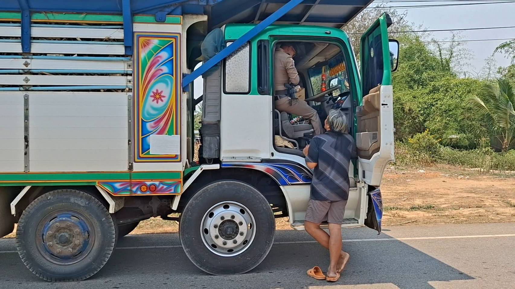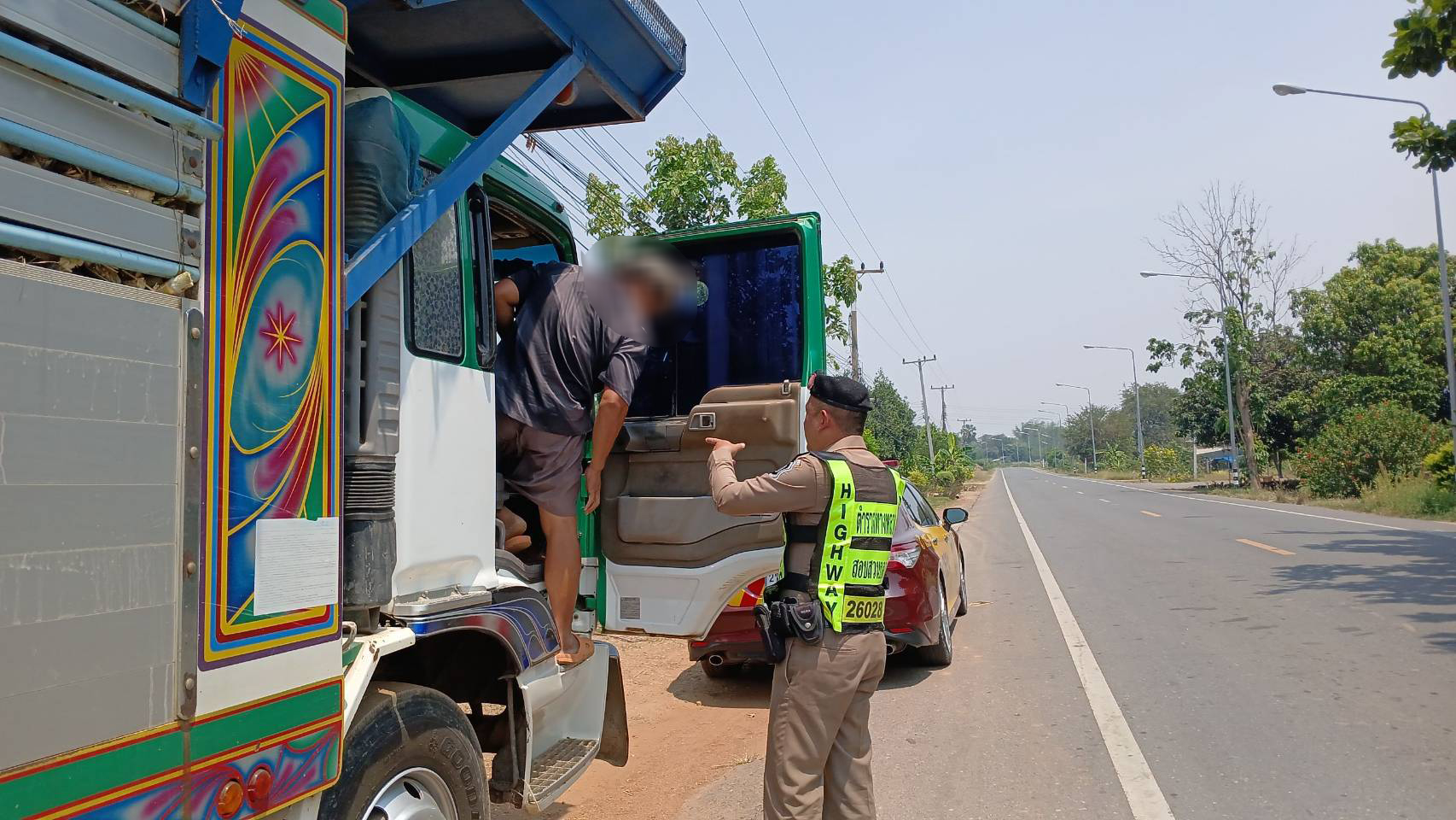 ที่จังหวัดสุพรรณบุรี ร.ต.อ.ณัฐ ปิ่นกระจัน หัวหน้าหน่วยบริการตำรวจทางหลวงด่านช้าง พร้อมด้วย ร.ต.อ.ปณิธาน ใจชื้น , ด.ต.ชัยมงคล คล้ายทอง , ด.ต.ธงชัย ศรีเรือน ออกตรวจพื้นที่รับผิดชอบ ไปตามถนนทางหลวงชนบท สาย สพ.4016 หมู่ 9 ตำบลห้วยขมิ้น อำเภอด่านช้าง พบรถบรรทุก ยี่ห้อฮีโน่ สีเขียว หมายเลขทะเบียน 83-7276 สุพรรณบุรี ขับขี่มาโดยรถบรรทุกสิ่งของโดยไม่มีสิ่งปกคลุม และผู้ขับขี่มีลักษณะท่าทางมีพิรุธต้องสงสัย จึงได้ให้สัญญาณให้รถคันดังกล่าวหยุด เมื่อรถคันดังกล่าวเห็นรถเจ้าหน้าที่ตำรวจจึงได้หยุดรถ