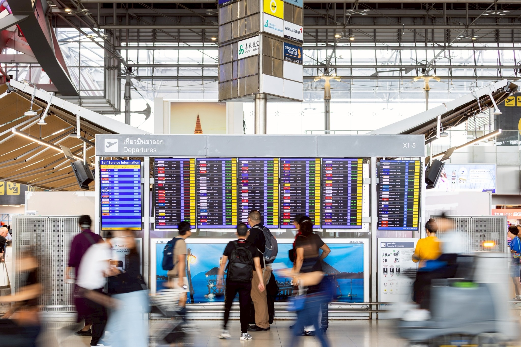 *****นอกจากนี้ ทสภ. ยังได้ประชาสัมพันธ์ส่งเสริมให้ผู้โดยสารเลือกใช้เทคโนโลยีและนวัตกรรม เพื่อช่วยลดระยะเวลาการรอคอย เพิ่มความคล่องตัวในการใช้บริการ และยกระดับประสบการณ์การเดินทางให้มีความสะดวก รวดเร็วและมีประสิทธิภาพยิ่งขึ้น อาทิ การใช้ระบบเช็กอินด้วยตนเอง (Common Use Self Service: CUSS) ระบบโหลดสัมภาระด้วยตนเอง (Common Use Bag Drop: CUBD) และระบบยืนยันตัวตนผู้โดยสาร (Biometric Technology) ซึ่งจะช่วยลดขั้นตอนการแสดงเอกสาร ลดความแออัด และเพิ่มความรวดเร็วในแต่ละจุดให้บริการสำหรับการเดินทางเข้า – ออก ทสภ. ได้เตรียมความพร้อมระบบขนส่งสาธารณะอย่างเพียงพอ ทั้งรถแท็กซี่สาธารณะรถลีมูซีน รถโดยสารสาธารณะ และรถไฟฟ้า Airport Rail Link โดยในช่วงที่มีผู้โดยสารหนาแน่น จะมีการประสานผู้ให้บริการรถขนส่งสาธารณะเพิ่มจำนวนรถให้เพียงพอ พร้อมทั้งร่วมกับหน่วยงานที่เกี่ยวข้องตรวจสอบความพร้อมของผู้ขับขี่และสภาพรถให้มีสภาพสมบูรณ์อย่างเข้มงวด อาทิ การตรวจวัดระดับแอลกอฮอล์และการตรวจหาสารเสพติด เพื่อความปลอดภัยสูงสุดของผู้ใช้บริการ