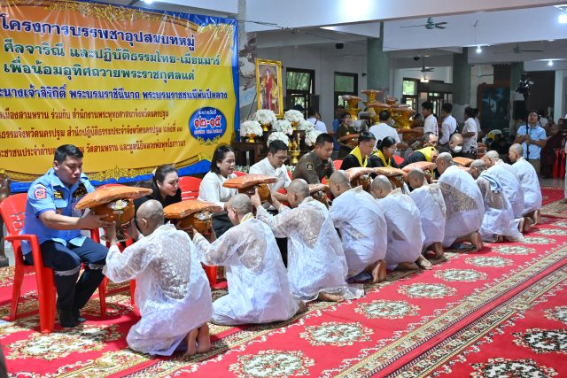 วัดสามพราน จังหวัดนครปฐม จัดโครงการบรรพชาอุปสมบทหมู่และปฏิบัติธรรมไทย-เมียนมาร์ เฉลิมพระเกียรติสมเด็จพระพันปีหลวง