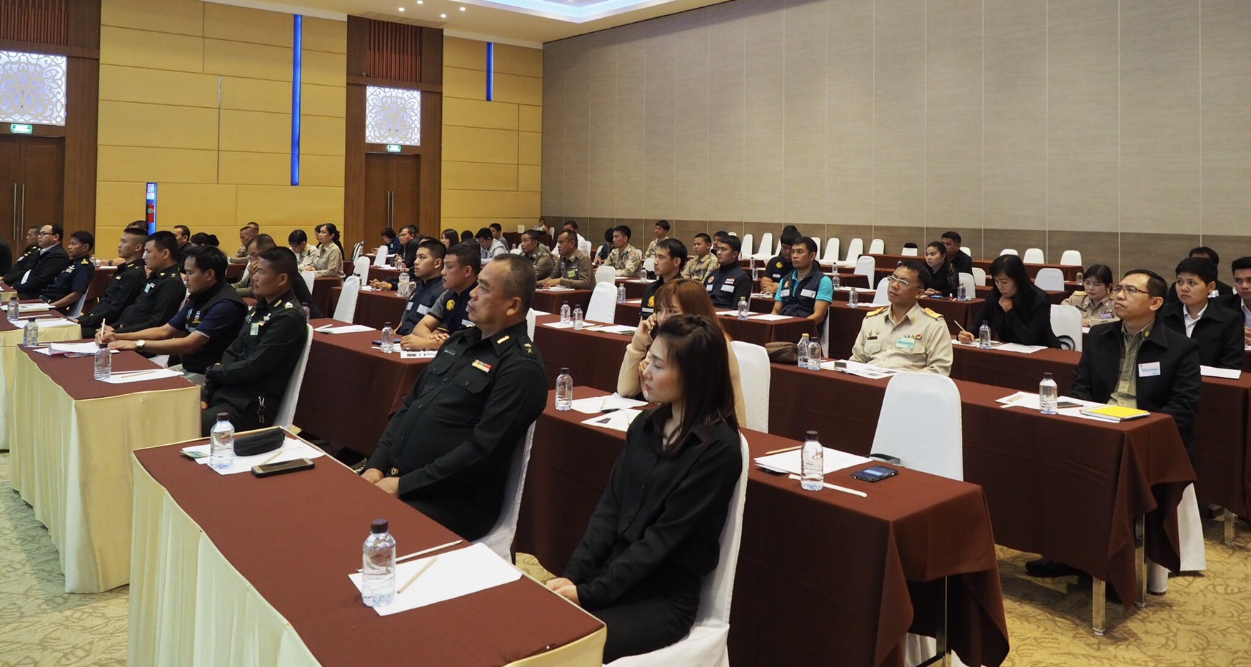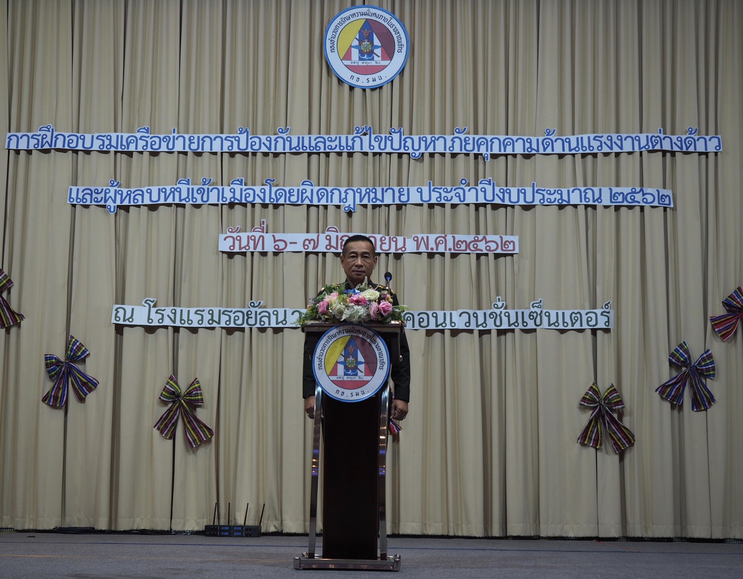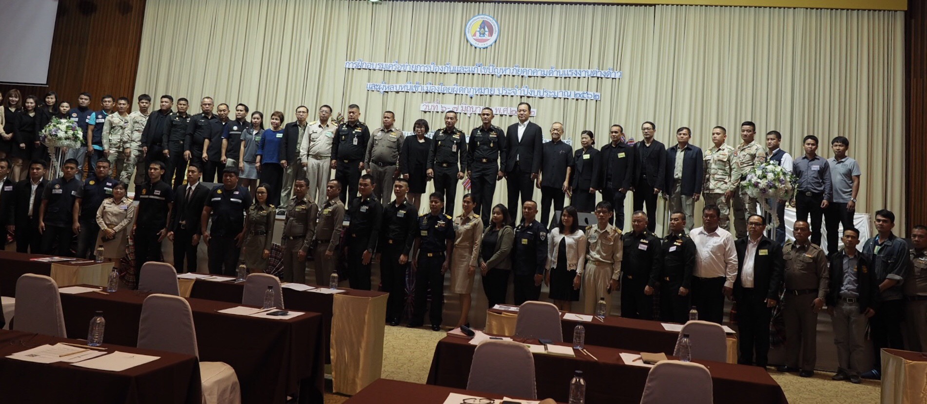 กอ.รมน.โดยศูนย์ประสานการปฏิบัติที่ 2 ลุยแก้ปัญหาแรงงานต่างด้าว และยาเสพติด ตามนโยบายของรัฐบาลในการจัดระเบียบแรงงานต่างด้าว ให้อยู่ในขอบเขตที่สามารถควบคุมได้และไม่ก่อให้เกิดผลกระทบทางด้านเศรษฐกิจและสังคม เพื่อปฏิบัติตามนโยบายดังกล่าว วันนี้ 6 มิ.ย.62 เวลา 0900 พล.ท.กิตติธัช บุพศิริ ผอ.ศูนย์ประสานการปฏิบัติที่ 2 กอ.รมน.เป็นประธานในพิธีเปิดการฝึกอบรมเครือข่ายการป้องกันและแก้ไขปัญหาภัยคุกคามด้านแรงงานต่างด้าวและผู้หลบหนีเข้าเมืองโดยผิดกฎหมาย ณ โรงแรมรอยัล นาคารา และคอนเวนชั่นเซ็นเตอร์ อ.เมือง จ.หนองคาย