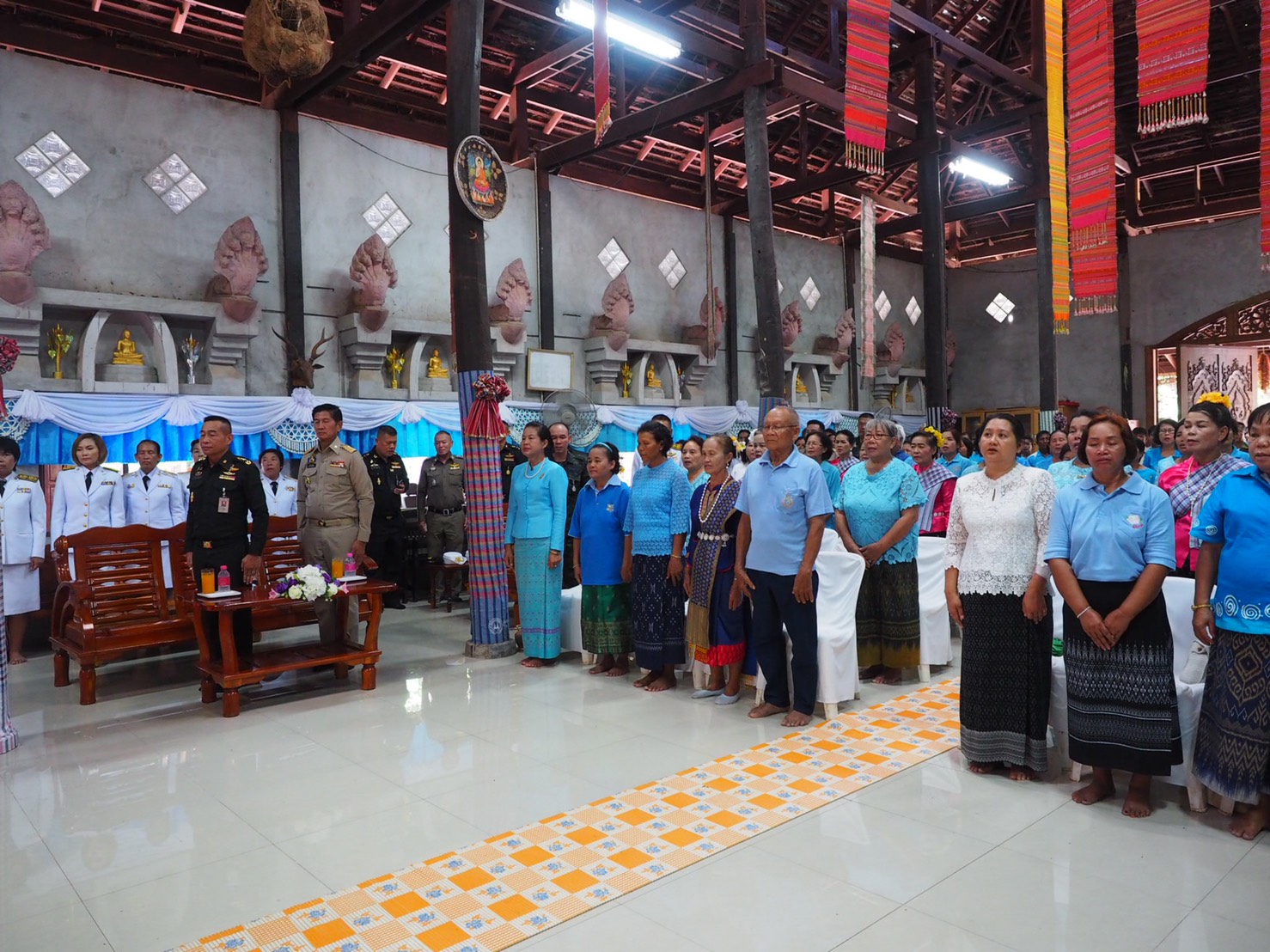 โดยมีวัตถุประสงค์เพื่อเพิ่มองค์ความรู้ด้านตัวบทกฎหมาย บทลงโทษเกี่ยวกับการใช้แรงงานต่างด้าวผิดกฎหมาย และสร้างเครือข่ายเฝ้าระวังป้องกันผู้หลบหนีเข้าเมืองเข้ามาลักลอบทำงานโดยผิดกฎหมาย หลังจากนั้น ในเวลา 13.30 พลโทกิตติธัช บุพศิริ ผู้อำนวยการศูนย์ประสานการปฏิบัติที่ 2 กอ.รมน. พร้อมด้วยนายรณชัย จิตรวิเศษ ผู้ว่าราชการจังหวัดหนองคาย และคณะร่วมเป็นประธานพิธีมอบธงสัญลักษณ์รับรองครัวเรือนปลอดภัยจากยาเสพติด กองทุนแม่ของแผ่นดิน และพบปะราษฎรชุมชนเข้มแข็ง บ.เวียงคุกใต้ ม.๒ ต.เวียงคุกใต้ อ.เมือง จ.หนองคาย
