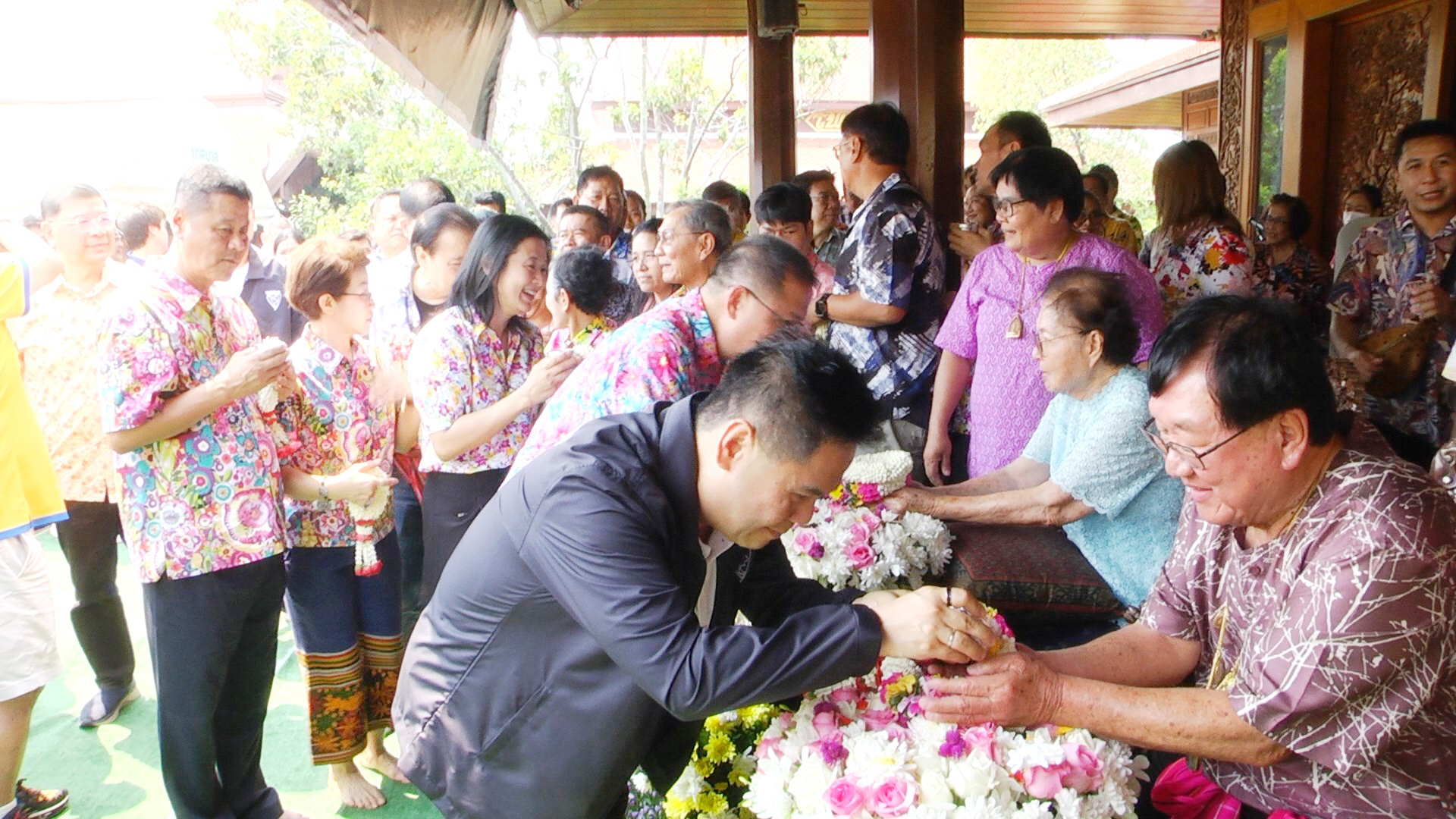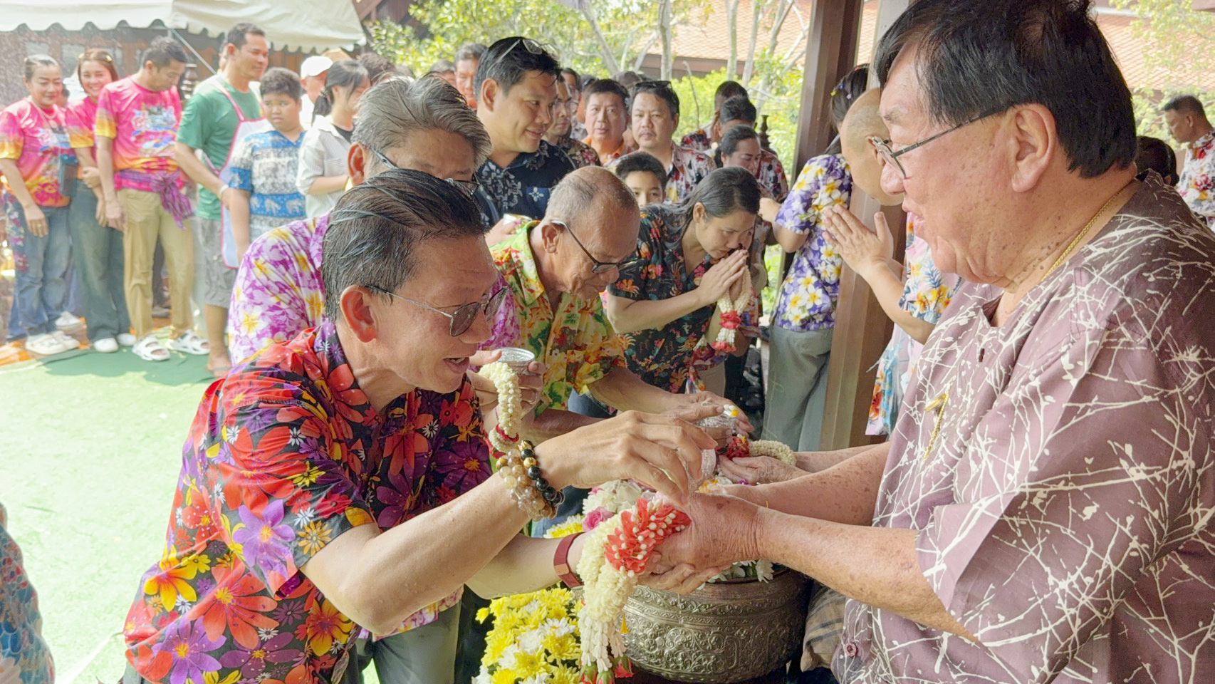 บรรยากาศสงกรานต์ ท็อป “วราวุธ” รมว.อุตสาหกรรม รดน้ำดำหัว ขอพรปีใหม่ไทย ประภัตร โพธสุธน ชี้ เป็นขุนพลของพ่อบรรหาร-เสาหลักทำงานเพื่อคนสุพรรณบุรี ด้านประภัตร อวยพรให้เจริญรุ่งเรือง พ่อเมืองสุพรรณ แต่งกลอนอวยพรปีใหม่ ให้ประภัตร