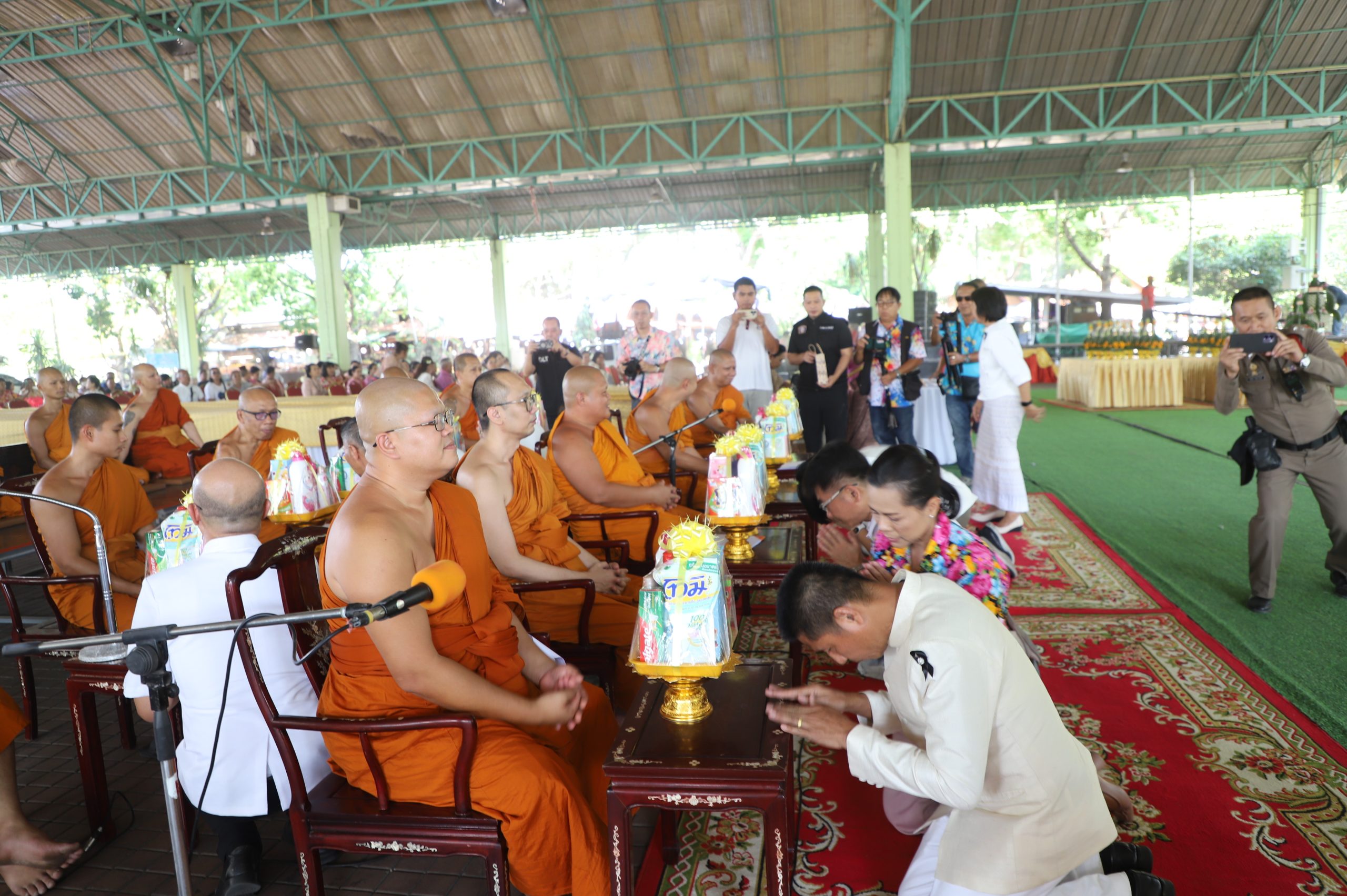 พิธีอันศักดิ์สิทธิ์ในครั้งนี้ ได้รับความเมตตาจาก พระเดชพระคุณ พระธรรมวชิรกวี ที่ปรึกษาเจ้าคณะภาค 3 เจ้าอาวาสวัดพระนอนจักรสีห์ วรวิหาร เป็นประธานฝ่ายสงฆ์ และมี นายวราดิศร อ่อนนุช ผู้ว่าราชการจังหวัดสิงห์บุรี ให้เกียรติเป็นประธานฝ่ายฆราวาส โดยมี พล.ต.ต.ชัยรพ จุณณวัตต์ ผู้บังคับการตำรวจภูธรจังหวัดสิงห์บุรีนางสาววีรวรรณ จันทนเสวี รองผู้ว่าราชการจังหวัดสิงห์บุรี พร้อมด้วยนายอำเภอเมือง หัวหน้าส่วนราชการ ข้าราชการ และพุทธศาสนิกชนชาวสิงห์บุรี ตลอดจนนักท่องเที่ยว เข้าร่วมพิธีอย่างพร้อมเพรียง ณ ศาลาอเนกประสงค์ของวัด