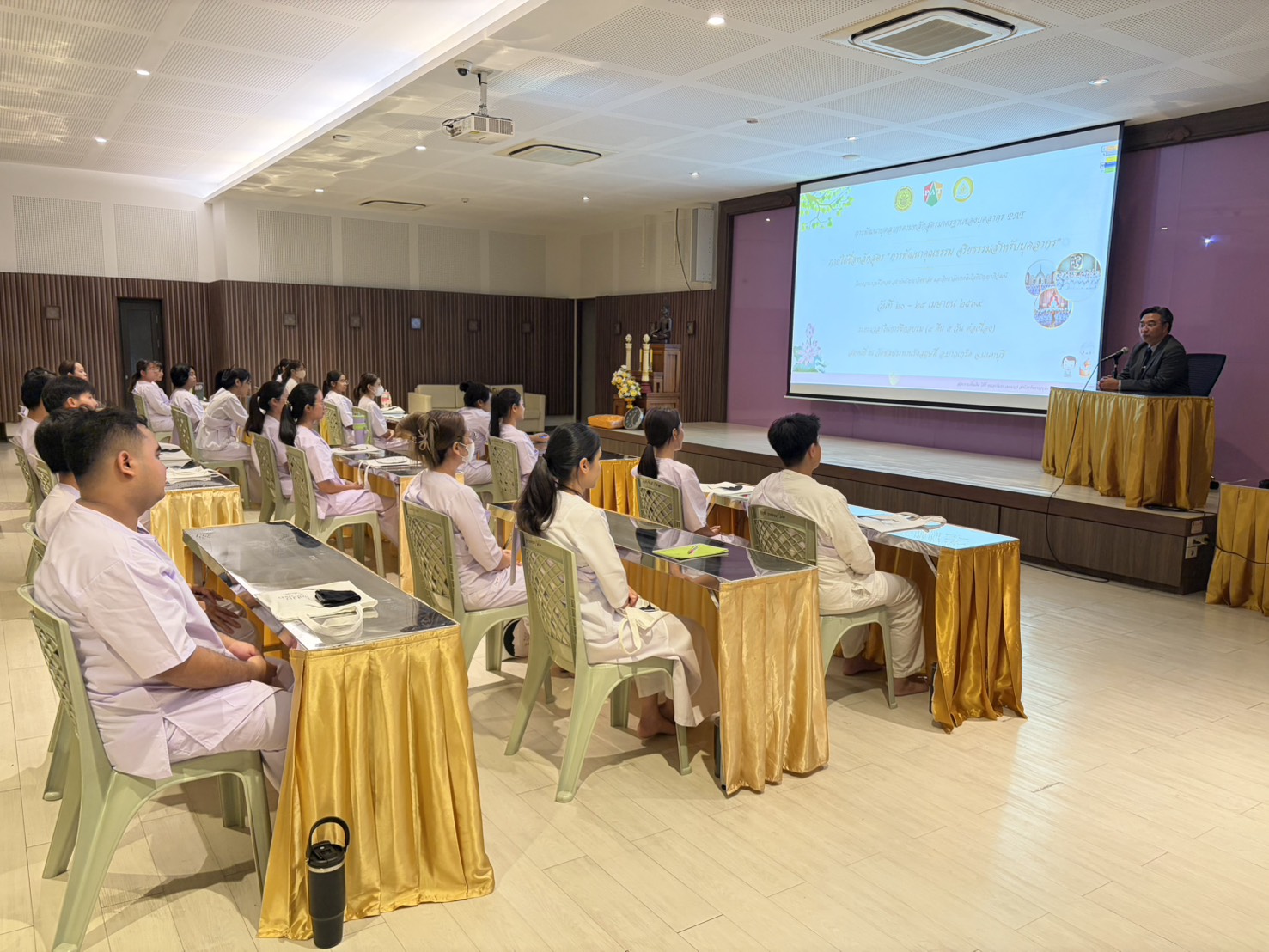 นายวิเชียร เนียมน้อม ผู้แทนผู้รับใบอนุญาตและผู้อำนวยการวิทยาลัยเทคโนโลยีปัญญาภิวัฒน์ เป็นประธานในพิธีเปิดโครงการพัฒนาคุณธรรม จริยธรรม บุคลากร รุ่นที่9 ดำเนินการโดยสำนักทรัพยากรบุคคล ระหว่างวันที่ 20-24 เมษายน 2569 มีวัตถุประสงค์เพื่อส่งเสริมให้บุคลากรผู้เข้ารับการอบรมมีคุณธรรม จริยธรรม และจรรยาบรรณที่ดี, ส่งเสริมให้บุคลากรได้นำหลักธรรมทางพระพุทธศาสนามาพัฒนาตนเองให้มีคุณภาพชีวิตที่ดี และส่งเสริมให้มีจิตสำนึกในการใช้หลักธรรมในการครองตน ครองคน ครองงานตามหลักธรรมภิบาล