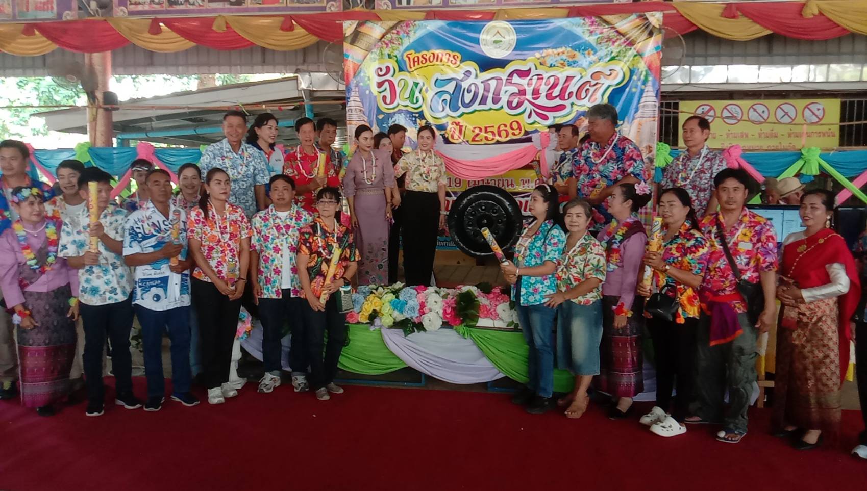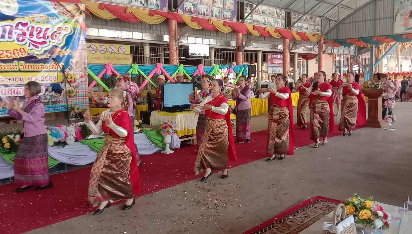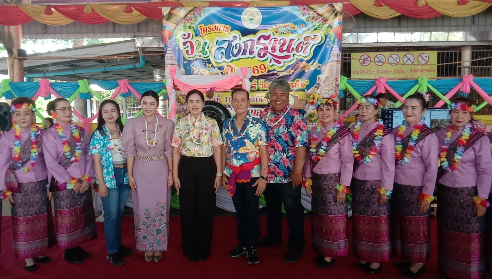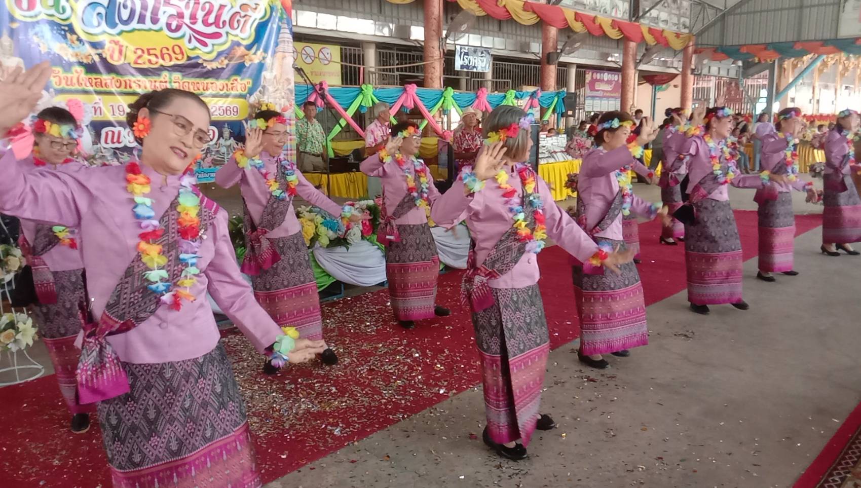 นายชูเกียรติ จีนาภักดิ์ ส.ส.กาญจนบุรี เขต2 พรรคภูมิใจไทย ได้เดินทางมาร่วมกิจกรรมดังกล่าวและมอบเงินรางวัลให้กับตัวแทนนางรำผู้สูงอายุและนำขนมจีนแกงเขียวหวานมาแจกต่ายให้ผู้สูงอายุและประชาชนทั่วไปทานอีกด้วย ภายในงานมีกิจกรรม สรงน้ำพระพุทธรูป รดน้ำดำหัวผู้สูงอายุ และการแข่งขันกีฬาพื้นบ้านสำหรับผู้สูงอายุ การแสดงรำของผู้สูงอายุ และประชาชนทั่วไป มีของแจกและอาหารจำนวนมากแจกจ่ายให้กับผู้เข้าร่วมกิจกรรมซึ่งช่วงเย็นของทุกปีจะมีประชาชนมาร่วมเล่นสงกรานต์จำนวนมาก