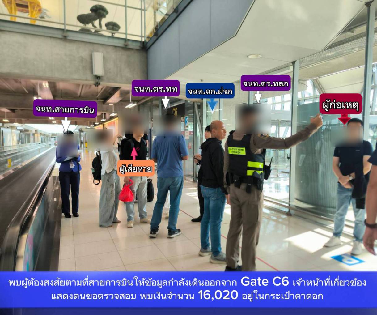 *****เมื่อวันที่ 13 เมษายน 2569 เวลา 15.20 น. ศูนย์รักษาความปลอดภัยท่าอากาศยานสุวรรณภูมิ ได้รับแจ้งจากเจ้าหน้าที่สายการบิน ว่ามีผู้โดยสารชาวจีนอายุ 45 ปี ซึ่งเดินทางมาจากเวียงจันทน์แจ้งทรัพย์สินสูญหายเป็นเงินสด จำนวน 16,020 บาท ระหว่างโดยสารบนอากาศยาน ซึ่งลูกเรือของเที่ยวบินดังกล่าวให้ข้อมูลเพิ่มเติมว่า พบบุคคลต้องสงสัยมีพฤติกรรมรื้อค้นสัมภาระบริเวณช่องเก็บสัมภาระเหนือศีรษะ