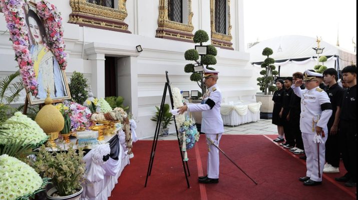 ผอ.สนง.หน่วยบัญชาการทหารพัฒนา (นทพ.) กองบัญชาการกองทัพไทย นำเยาชนทั่วประเทศ วางมาลาถวายสักการะ ถวายบังคมพระบรมศพ พระบรมราชชนนีพันปีหลวงฯ พระที่นั่งดุสิตมหาปราสาท