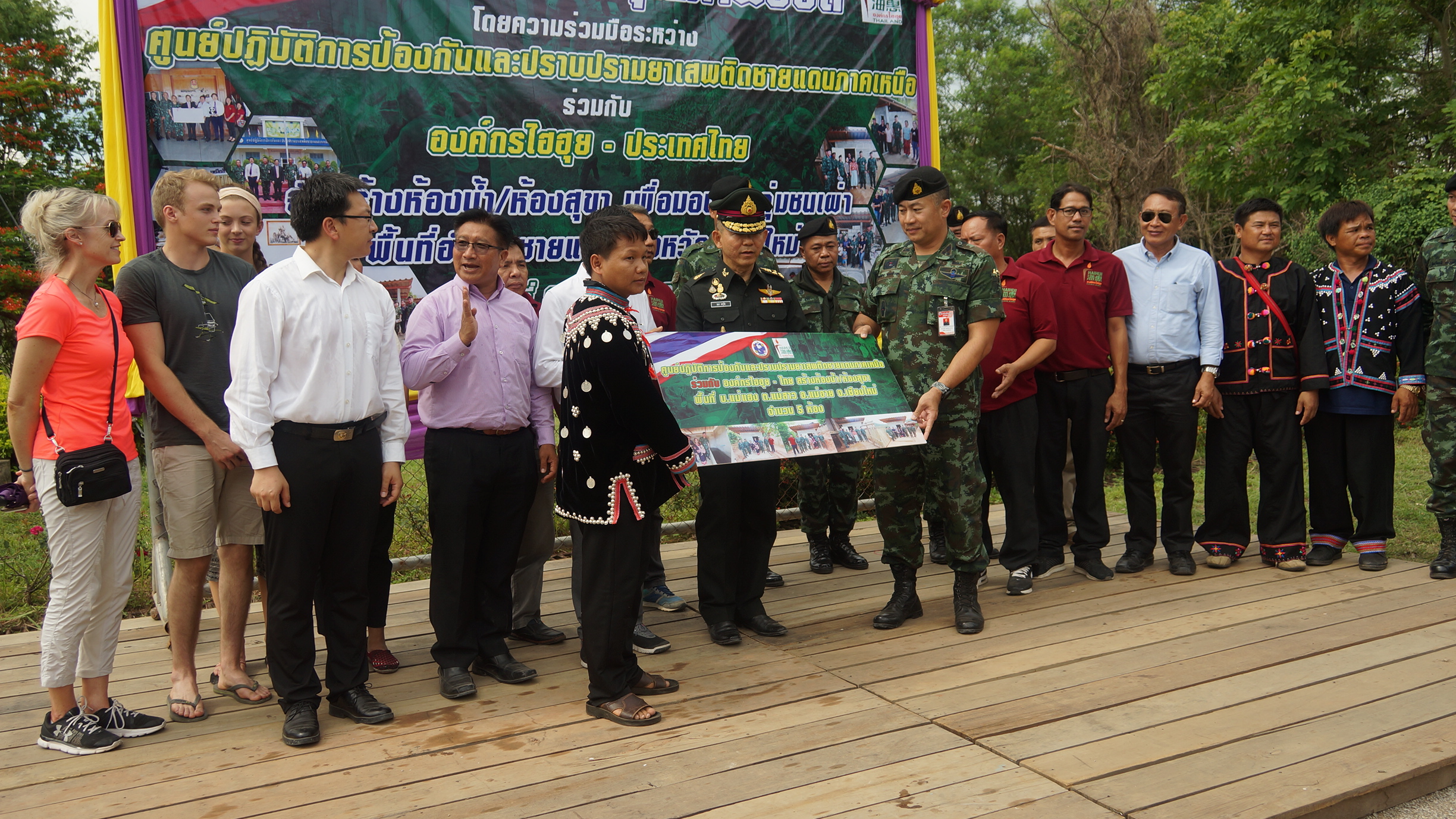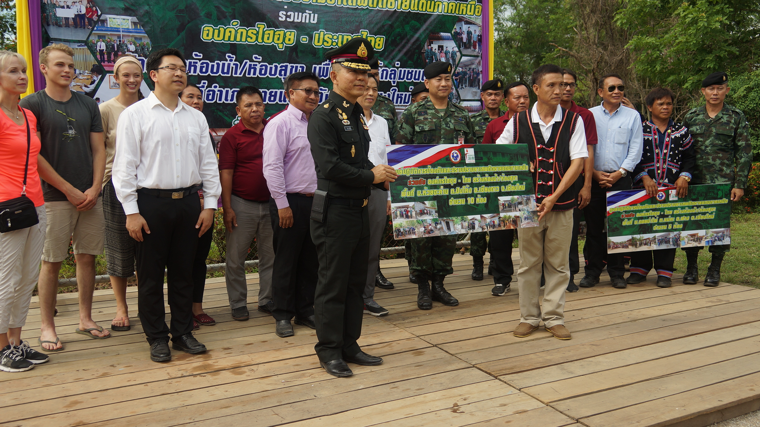 โดยทางท่าน พลเอก ธนา จารุวัติ ผู้ทรงคุณวุฒิพิเศษกองทัพบก ปฏิบัติหน้าที่เลขาธิการคณะกรรมการยุทธศาสตร์กองทัพบก คณะกรรมการพิจารณาการใช้ประโยชน์ป่าสงวนแห่งชาติ ได้เป็นประธานทำการส่งมอบห้องน้ำจำนวน28 หลังให้กับประชาชนในพื้นที่ชายแดนเป็นครอบครัวที่ไม่ยุ่งเกี่ยวกับยาเสพติด และเป็นครอบครัวยากจน ที่ทางส่วนศูนย์ปฏิบัติการป้องกันและปราบปรามยาเสพติชายแดนภาคเหนือร่วมกับองค์กรไฮฮุย-ไทยและองค์กรไฮฮุย-จีน ที่ได้ร่วมกันสนับสนุนงบประมาณมาทำการสร้างส้วมให้กับประชาชนในพื้นที่ชายแดนที่ไม่ยุ่งเกี่ยวกับยาเสพติด ที่ทางส่วนราชการ กำนันผู้ใหญ่บ้าน ผู้นำชุมชนได้คัดสรรค์คัดเลือกเพื่อสร้างส้วมซึมให้