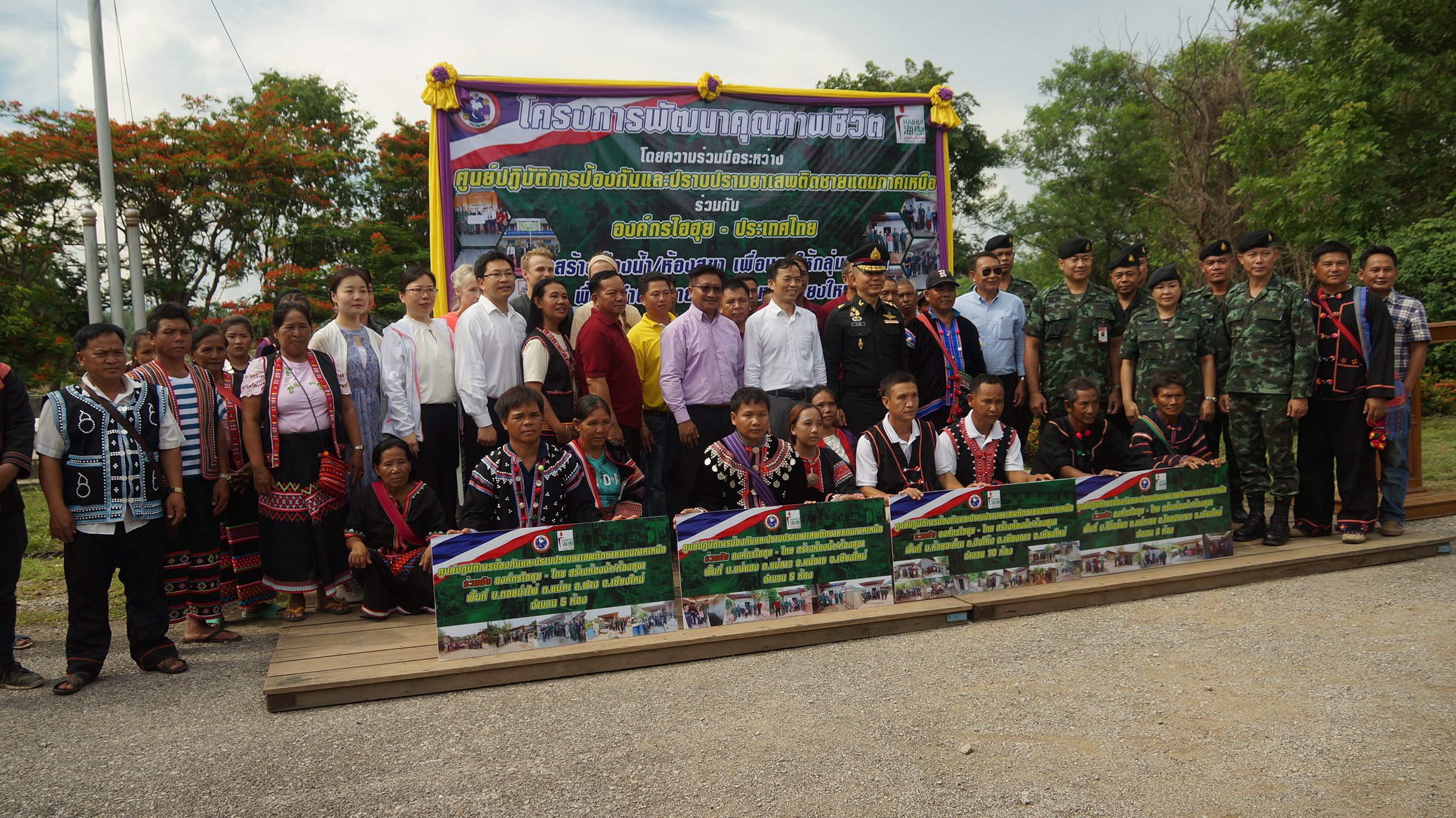 ศูนย์ปฏิบัติการป้องกันและปราบปรามยาเสพติชายแดนภาคเหนือร่วมกับองค์กรไฮฮุย-ไทย ร่วมกันสนับสนุนงบประมาณมาทำการสร้างส้วมให้กับประชาชนในพื้นที่ชายแดนที่ไม่ยุ่งเกี่ยวกับยาเสพติด