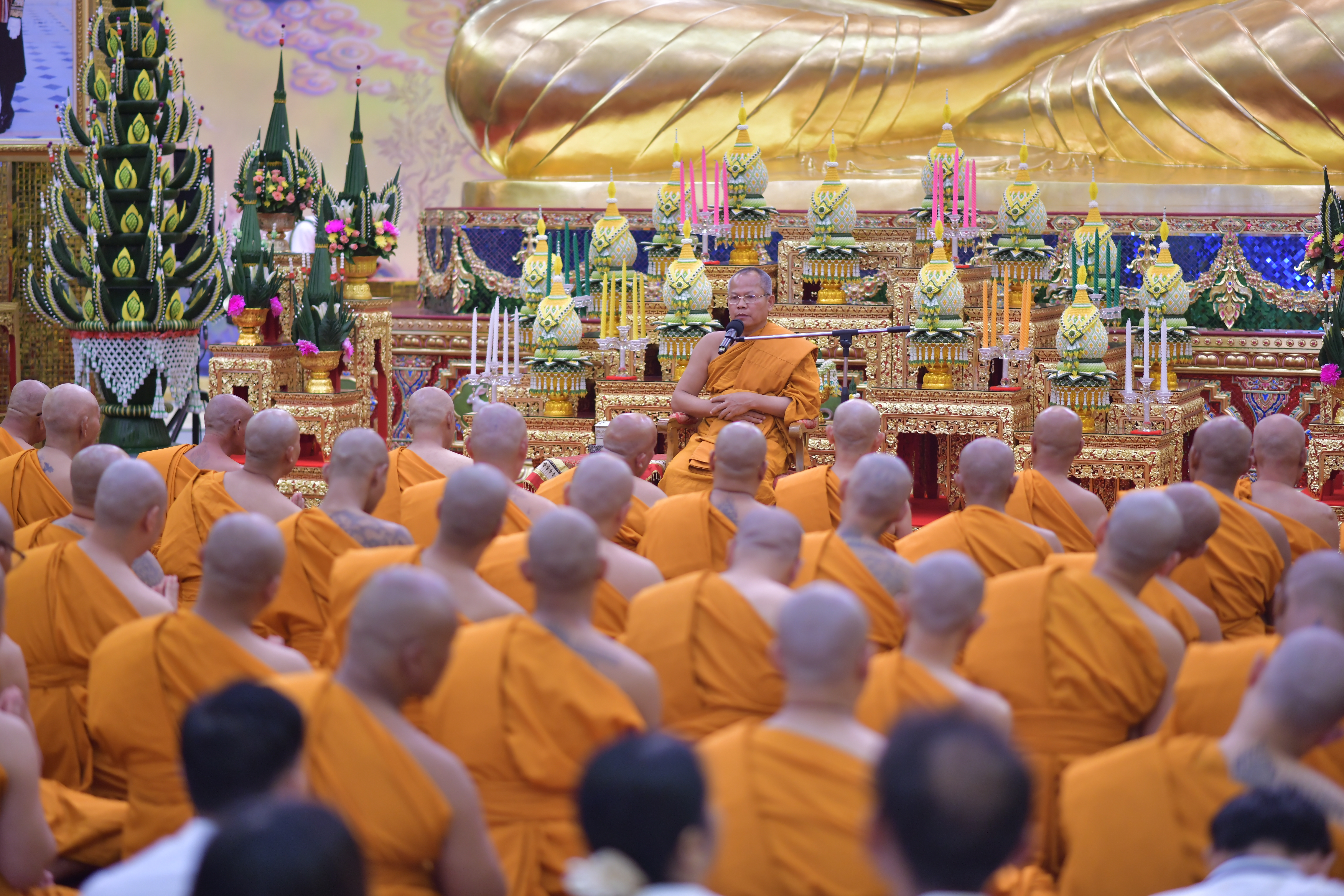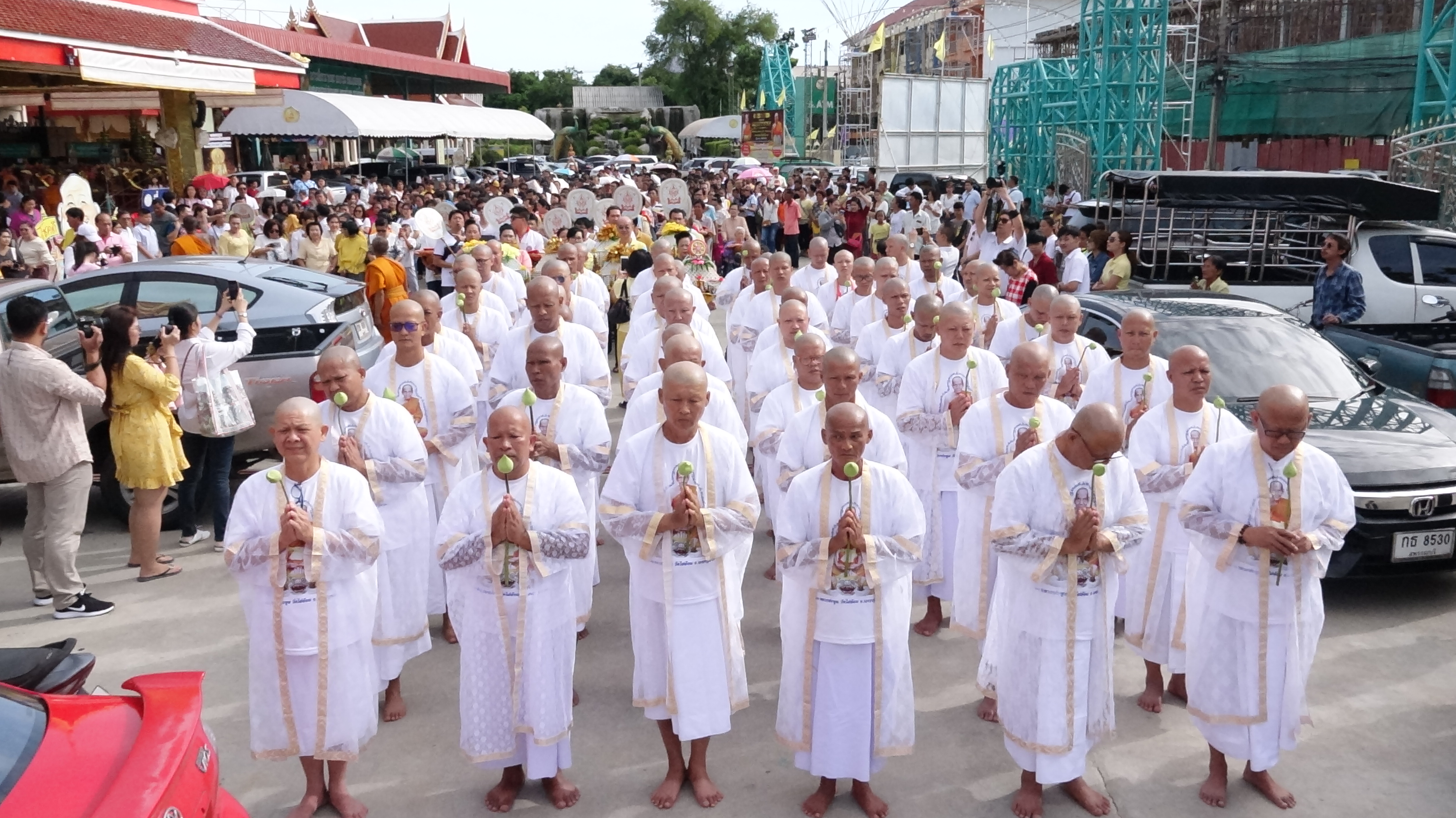 และเช้าวันนี้เข้าสู่ภาคพิธีบรรพชาอุปสมบท โดยมีพระสงฆ์ทั้งสิ้นรวม 54 รูป ที่สำคัญทุกรูปสามารถสวดมนต์ได้อย่างแคล่วคล่องอักขระบาลีออกเสียงชัดเจนไม่ติดขัดแต่ประการใด เนื่องเพราะด้วยความพร้อมหลายประการ เพราะทุกรูปตั้งใจมาบวชเรียนด้วยความบริสุทธิ์ใจเพื่อถวายเป็นพระราชกุศลแด่ในหลวงรัชกาลที่ 10 และจิตสำนึกแห่งความกตัญญูกตเวทีอย่างถ่องแท้ และหลังจากนี้ต่อไปก็จะเน้นเรื่องการสวดมนต์ทุกบทให้ได้ ทั้งนี้จะมีพระอาจารย์ที่มีความรู้ความสามารถมาคอยกำกับสอนให้วิชาความรู้อย่างเต็มเปี่ยม อีกทั้งทางวัดไผ่ล้อมได้จัดเตรียมบุคลากรมาบรรยายอบรมการศึกษาด้านพระธรรมวินัยในเบื้องต้น เพื่อให้พระทุกรูปที่บวชในโครงการนี้มีความแตกฉาน