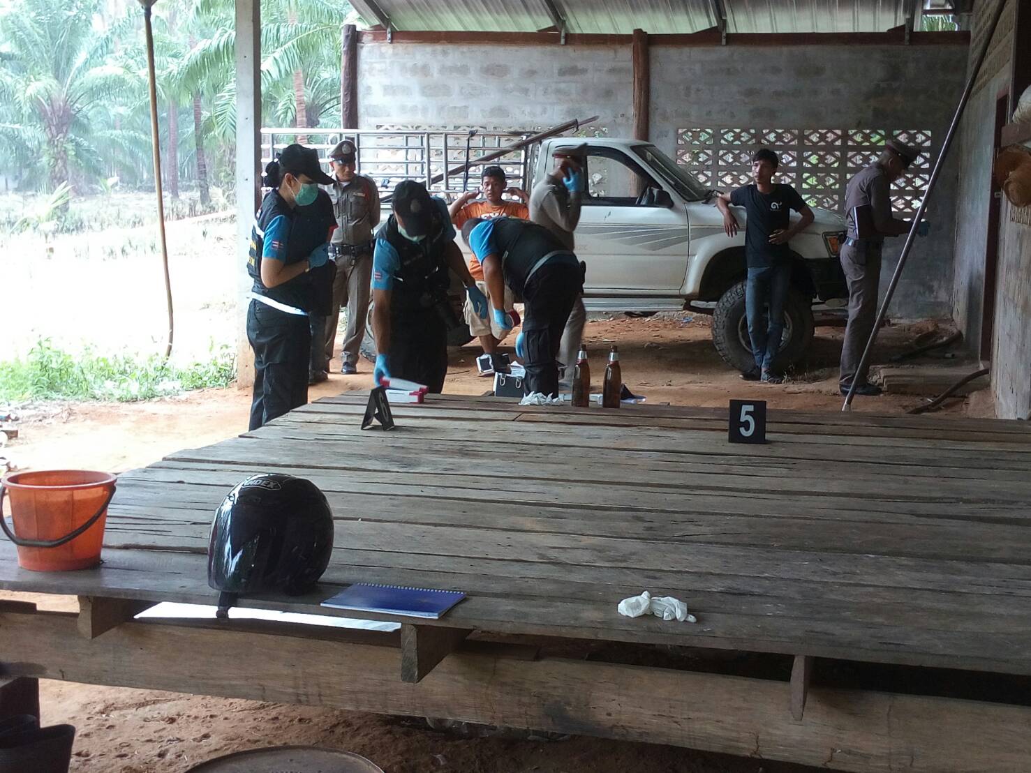 พบบริเวณหน้าบ้านดังกล่าว มีกองไฟเหลือแต่ขี้เถ้ากองใหญ่อยู่ 1 กอง บริเวณในกองไฟมีเศษชิ้นส่วยลวดยางรถยนต์จำนวนหนึ่งและมีเศษวัสดุคล้ายกระดูกมนุษย์ที่ถูกเผาไฟแล้วจำนวนหนึ่ง เจ้าหน้าที่ตำรวจพิสูจน์หลักฐาน ภ.จว.ประจวบคีรีขันธ์ จึงตรวจสอบพบเป็นเศษชิ้นส่วนกระดูกที่เผาไฟแล้ว ทั้งชิ้นส่วนกระดูก และศีรษะ นอกจากนี้บริเวณโต๊ะนั่งหน้าบ้านยังพบหยดเลือดใต้โต๊ะและหยดเลือดเป็นทางที่พื้นดิน เมื่อเจ้าหน้าที่ตรวจเบื้องต้นพบว่าเป็นเลือดมนุษย์ และยังมีขวดเบียร์ที่ดื่มกินแล้วอีก 2 ขวด บริเวณข้างโอ่งน้ำยังพบกระทะรถยนต์ที่ถูกเผาไฟแล้วอีก 2 ลูกเจ้าหน้าที่จึงรวบรวมพยานหลักฐานทั้งหมดตรวจหาร่องรอยนิ้วมือแฝง