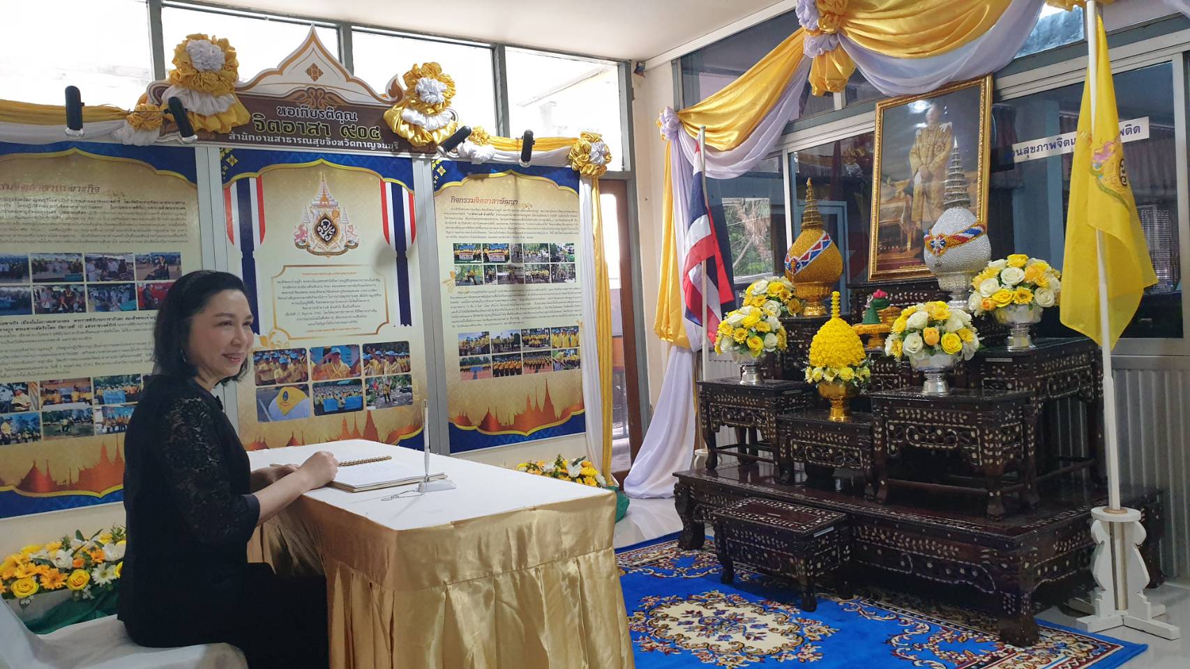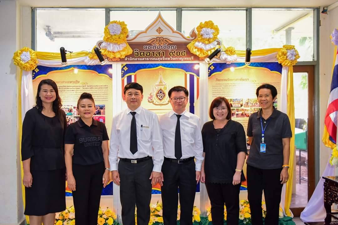 ร่วมลงนามถวายพระพรพระบาทสมเด็จพระปรเมนทรรามาธิบดีศรีสินทรมหาวชิราลงกรณฯ พระวชิรเกล้าเจ้าอยู่หัว และชมนิทรรศการหอเกียรติคุณ จิตอาสา 904 ของสำนักงานสาธารณสุขจังหวัดกาญจนบุรีที่รวบรวมกิจกรรมจิตอาสาพระราชทาน “เราทำความดีด้วยหัวใจ”ของสำนักงานสาธารณสุขจังหวัดกาญจนบุรี จิตอาสาเฉพาะกิจในงานพระราชพิธีสำคัญ และจิตอาสาพัฒนาสิ่งแวดล้อมร่วมกันกำจัดแหล่งเพาะพันธุ์ยุงลายเพื่อป้องกันควบคุมโรคไข้เลือดออก ณ บริเวณห้องโถง อาคารมัชฌิมาคาร สำนักงานสาธารณสุขจังหวัดกาญจนบุรี