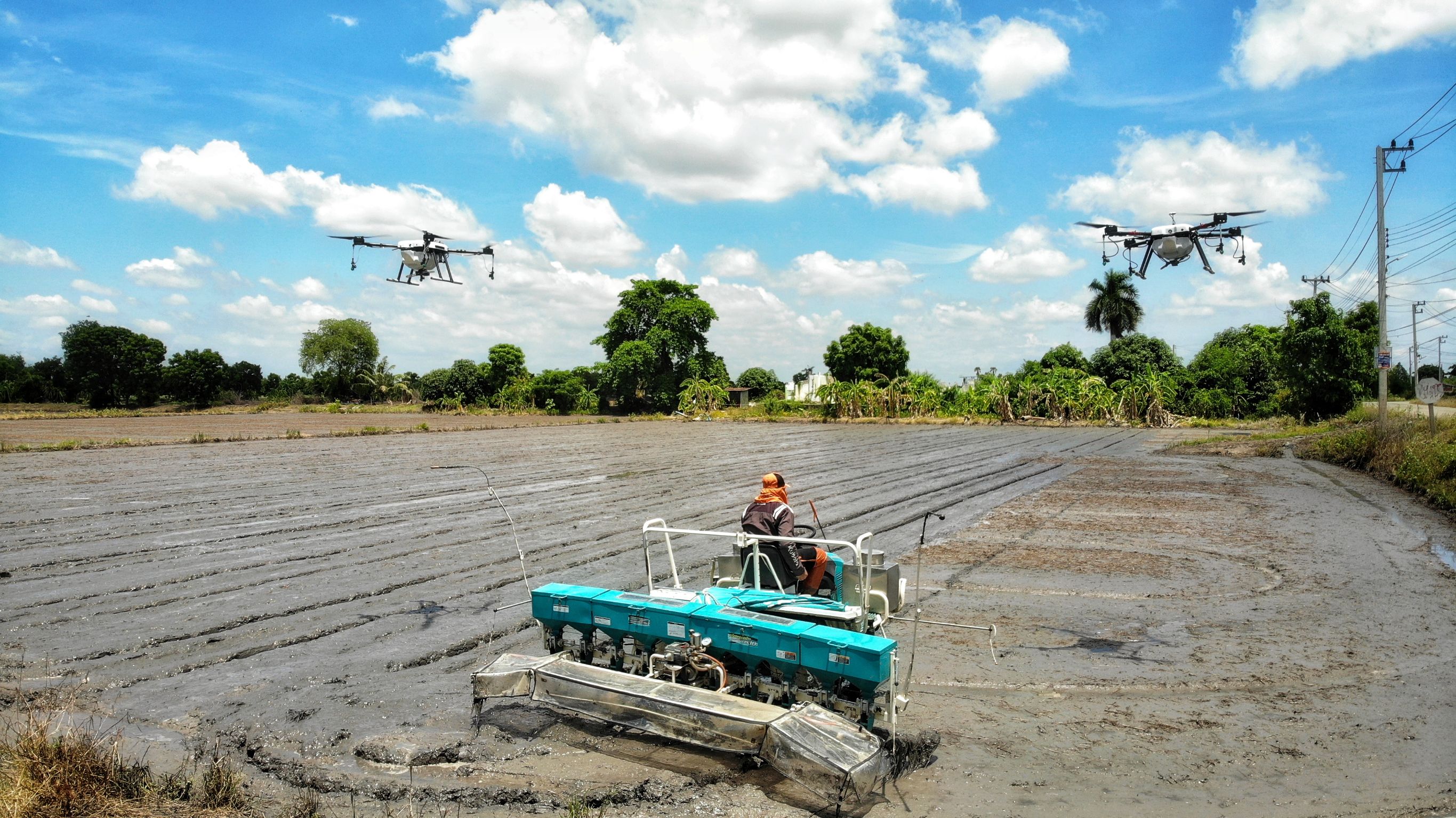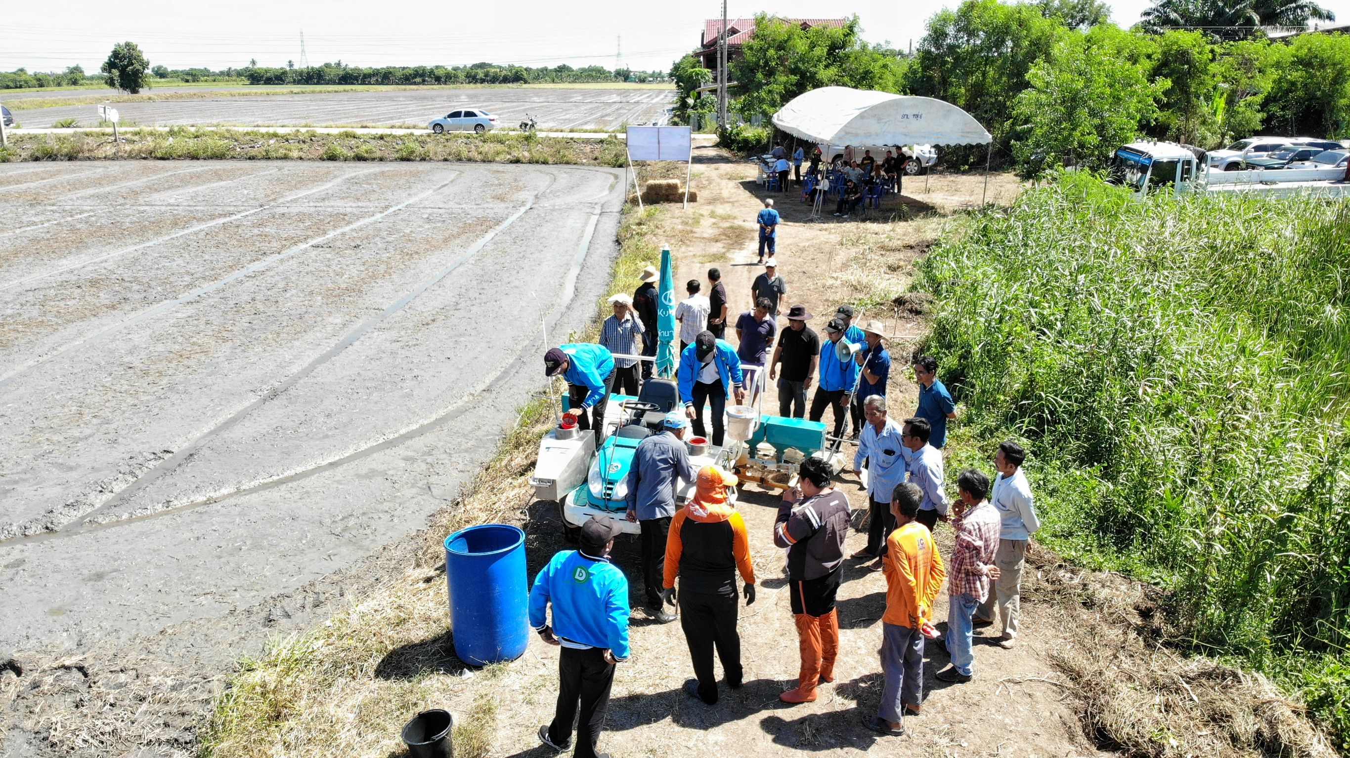 เกษตรปทุมธานี สาธิตรถหยอดเมล็ดพันธุ์ และใช้โดรนพ่นยาหว่านปุ๋ยนาข้าวทางอากาศแนวทางเกษตรอัจฉริยะเพื่อเพิ่มประสิทธิภาพ และลดต้นทุน การผลิต