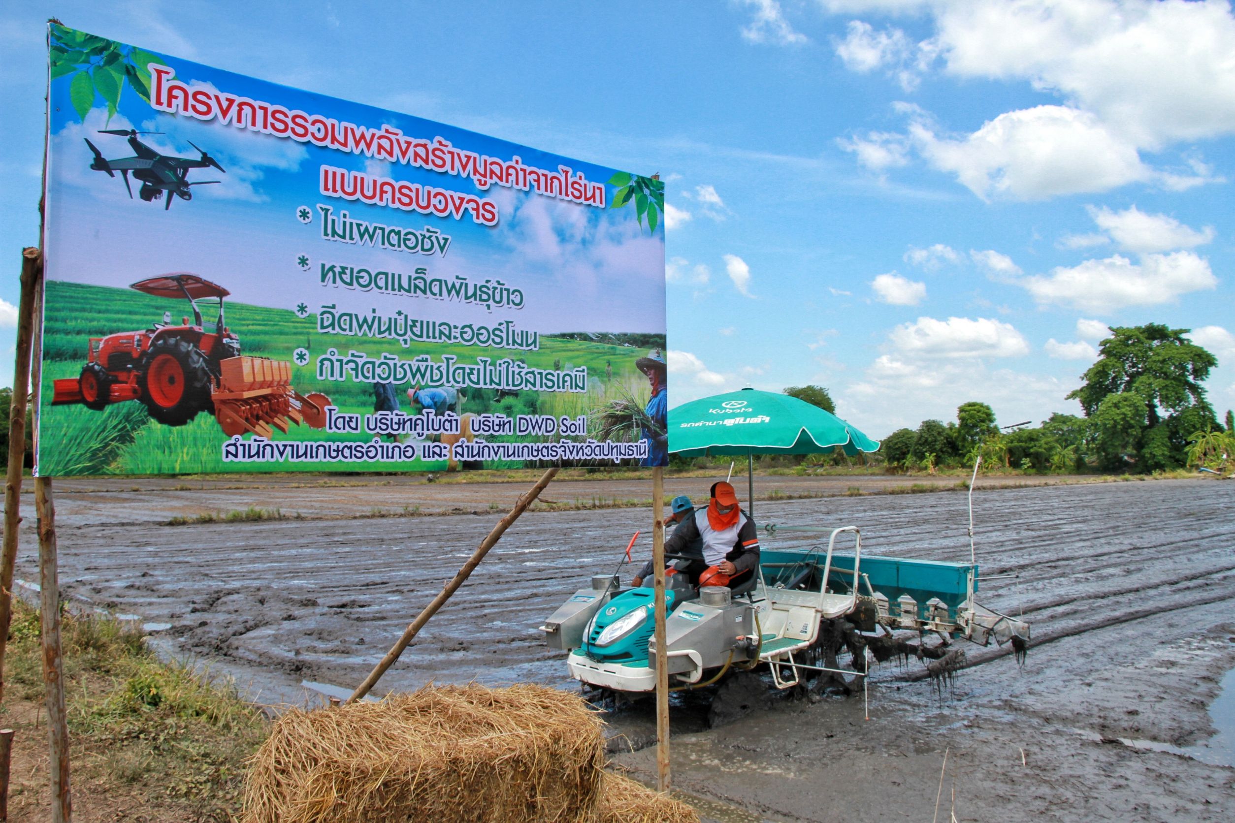 เมื่อเวลา 10.00 น.วันที่ 15 มิ.ย. 2562 ที่แปลงนาสาทิตหมู่ที่6 ตำบลคลองควาย อำเภอสามโคก จังหวัดปทุมธานี นายสมเดช คงกะพันธ์ เกษตรจังหวัดปทุมธานีพร้อม เกษตรอำเภอทั้ง 7 อำเภอ และหน่วยงานราชการในพื้นที่ บริษัท สยามคูโบต้า จำกัด บริษัท ดี ดับเบิลยู ดี อินเตอร์เนชั่นแนลจำกัดลงพื้นที่ให้ความรู้และทำแปลงส่งเสริมการปลูกข้าว มุ่งเน้นการใช้เครื่องจักรกลการเกษตรในการเพาะปลูก ทั้งรถหยอดเมล็ดพันธุ์ ที่ช่วยให้ต้นกล้ามีความสม่ำเสมอกัน และมีระยะที่เหมาะสมกับต้นข้าวในแต่ละพันธุ์ การใช้รถหยอดเมล็ดพันธุ์ ข้าว จะช่วยให้เกษตรกรลดการใช้เมล็ดพันธุ์ข้าวลงได้ ต้นข้าวเรียงกันเป็นแถวสวยงาม ง่ายต่อการบำรุงรักษา และโดรนเพื่อการเกษตรเพื่อเพิ่มประสิทธิภาพ และลดต้นทุน การผลิต