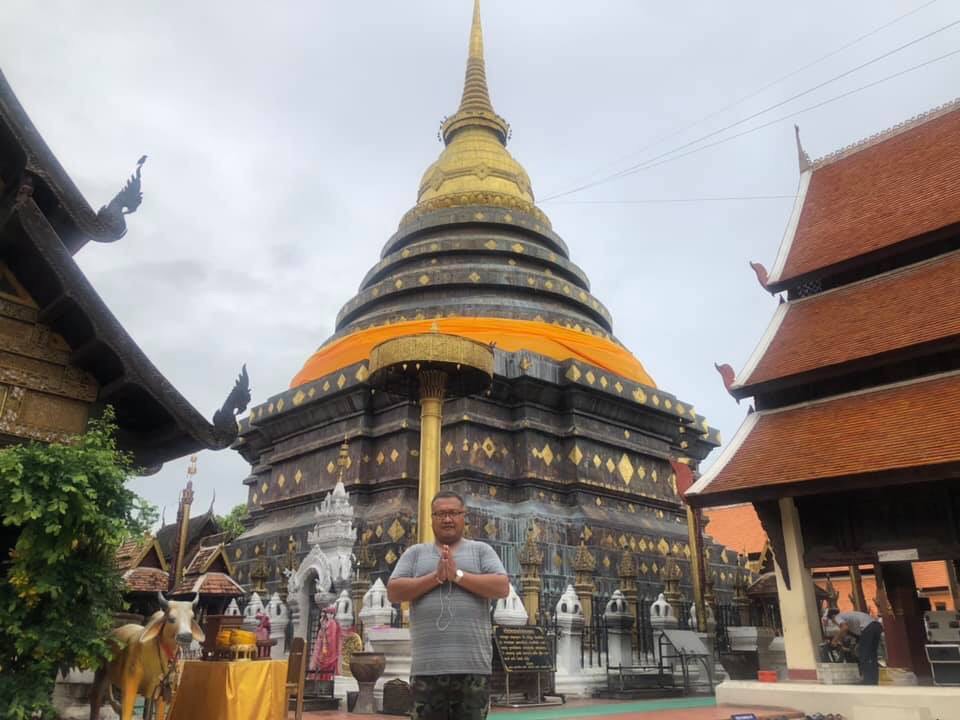 หลวงพี่น้ำฝนกล่าวอีกว่าวันนี้เป็นสถานที่สองสวดสามที่ด้วยกันคือพระธาตุลำปางหลวงพระธาตุหริภุญชัยและพระธาตุศรีจอมทองเวลา09.00 น. สวดที่พระธาตุลำปางหลวงซึ่งตั้งอยู่ที่วัดพระธาตุลำปางหลวงต.ลำปางหลวงอ.เกาะคาจ.ลำปางเป็นพระธาตุประจำปีเกิดของคนปีฉลูด้วยเริ่มสร้างในปีฉลูแล้วเสร็จในปีฉลูเช่นกันพุทธลักษณะฐาน