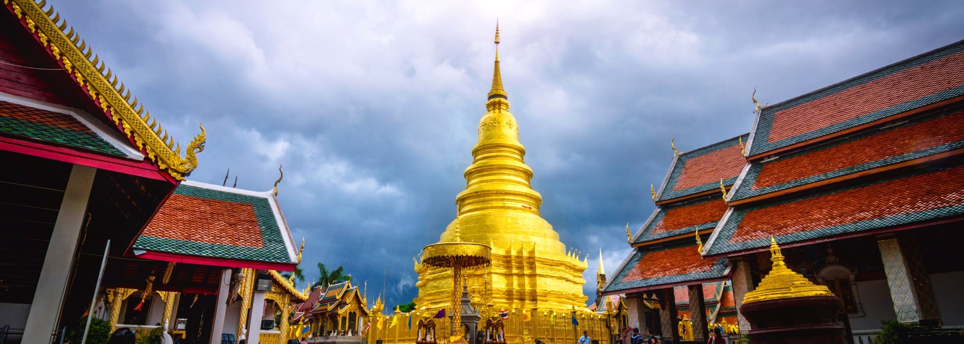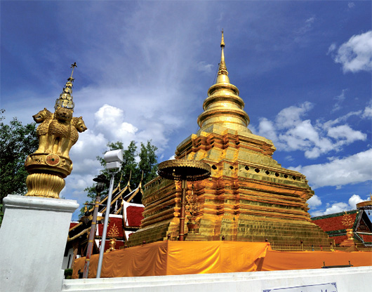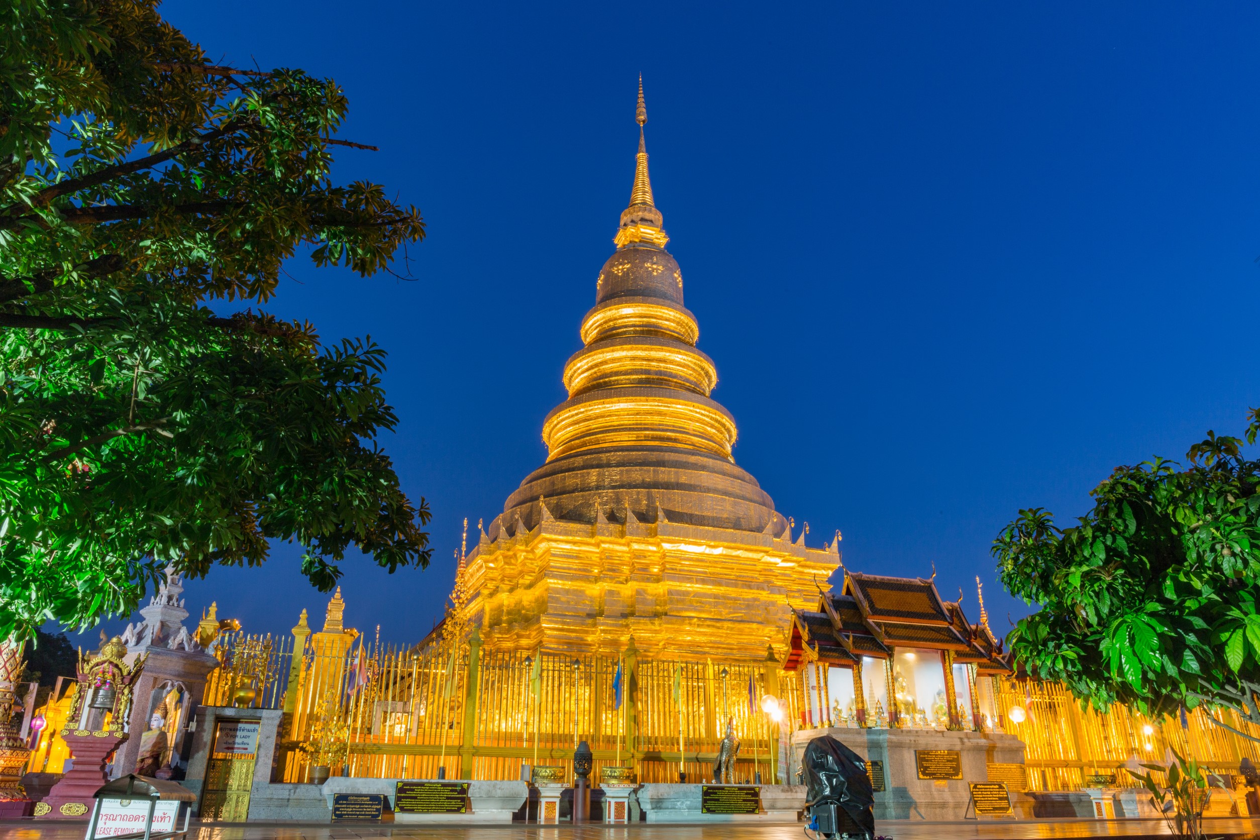 เวลา13.00 น. พระธาตุหริภุญชัยพระธาตุปีระกาตั้งอยู่ในวัดพระธาตุหริภุญชัยต.ในเมืองอ.เมืองจ.ลำพูนอยู่ห่างจากศาลากลางจังหวัดลำพูนประมาณ150 เมตรพระธาตุหริภุญชัยเป็นพระธาตุศักดิ์สิทธิ์สำคัญของจังหวัดลำพูนเป็นศูนย์รวมจิตใจของชาวลำพูนและเป็นหนึ่งในพระธาตุสำคัญแห่งดินแดนล้านนานอกจากนี้ยังเป็นพระธาตุประจำปีของคนเกิดปีระกา(ไก่) ตามคติความเชื่อของชาวล้านนาตามที่ได้กล่าวมาข้างต้นพระธาตุหริภุญชัยสร้างในปีพ.ศ. 1607 โดยพระเจ้าอาทิตยราชเพื่อเป็นที่ประดิษฐานพระบรมสารีริกธาตุประกอบด้วยธาตุกระหม่อมธาตุกระดูกอกธาตุกระดูกนิ้วมือและธาตุย่อยอีกเต็มบาตรหนึ่งตามตำนานพระธาตุหริภุญชัยกล่าวว่าลักษณะขององค์พระธาตุที่สร้างแรกเริ่มเดิมทีเป็นไปตามพุทธทำนายคือเป็นเจดีย์สี่เหลี่ยมทรงปราสาทสูง12 ศอกมีซุ้มทวารเข้าออกทะลุกันได้ทั้งสี่ด้านมีปราสาทศิลาแลงสี่เหลี่ยมอยู่มุมละองค์ครั้นเมื่อพญามังรายเข้ามายึดเมืองหริภุญชัยไว้ในครอบครองทรงโปรดให้บูรณะองค์พระธาตุหริภุญชัยปรับปรุงเป็นเจดีย์ทรงปราสาทห้ายอดต่อมาในราวปีพ.ศ. 1990สมัยพระเจ้าติโลกราชแห่งราชวงศ์มังรายโปรดให้บูรณะพระธาตุหริภุญชัยครั้งใหญ่มีการปรับรูปทรงเป็นเจดีย์ดังรูปแบบที่เห็นในปัจจุบันองค์พระธาตุหริภุญชัยปัจจุบันเป็นเจดีย์ทรงระฆังแบบล้านนาอันสวยงามสมส่วนหุ้มทองจังโกสีทองงดงามอร่ามตา