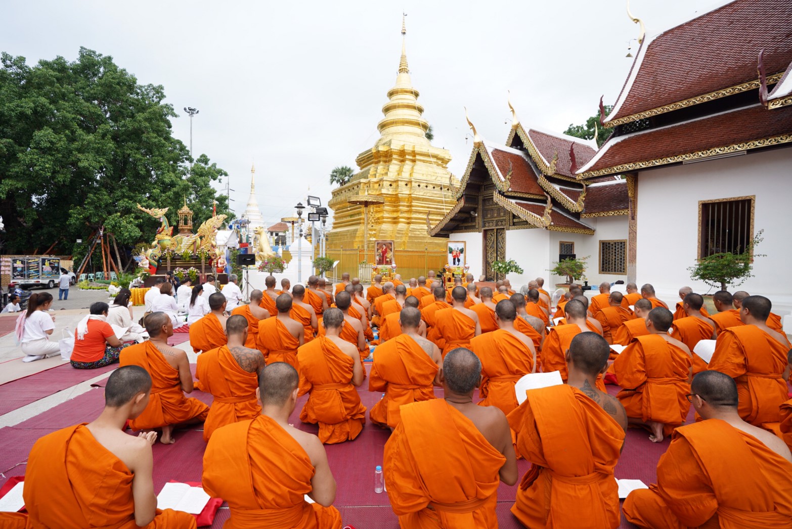 พระครูปลัดสิทธิวัฒน์นำธรรมยาตรา สวดมนต์พระธาตุประจำปี‘มะโรง–มะแม–จอ’ญาติโยมอุบาสกอุบาสิการ่วมพิธีที่จ.เชียงใหม่