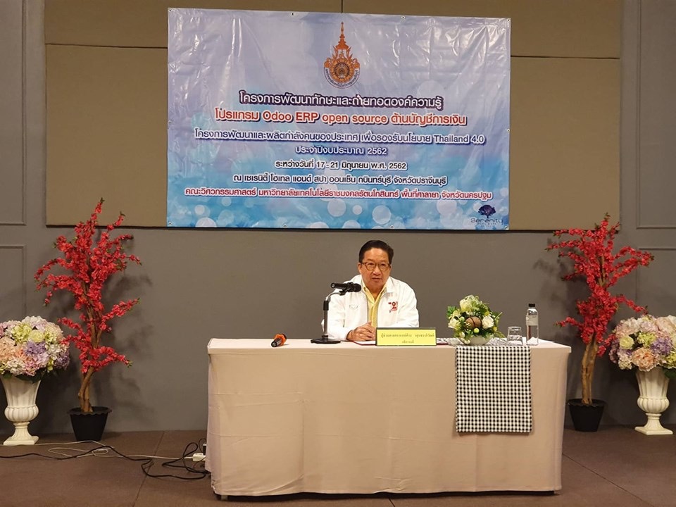 วันอังคารที่ 18 มิ.ย.2562 ผศ.ศิวะ วสุนธราภิวัฒก์ อธิการบดี เป็นประธานเปิด”โครงการพัฒนาทักษะและถ่ายทอดองค์ความรู้ โปรแกรม Od๐o ERP open source ด้านบัญชีการเงิน” และ รศ.ดร.อุดมวิทย์ ไชยสกุลเกียรติ รองอธิการบดี กล่าวรายงาน